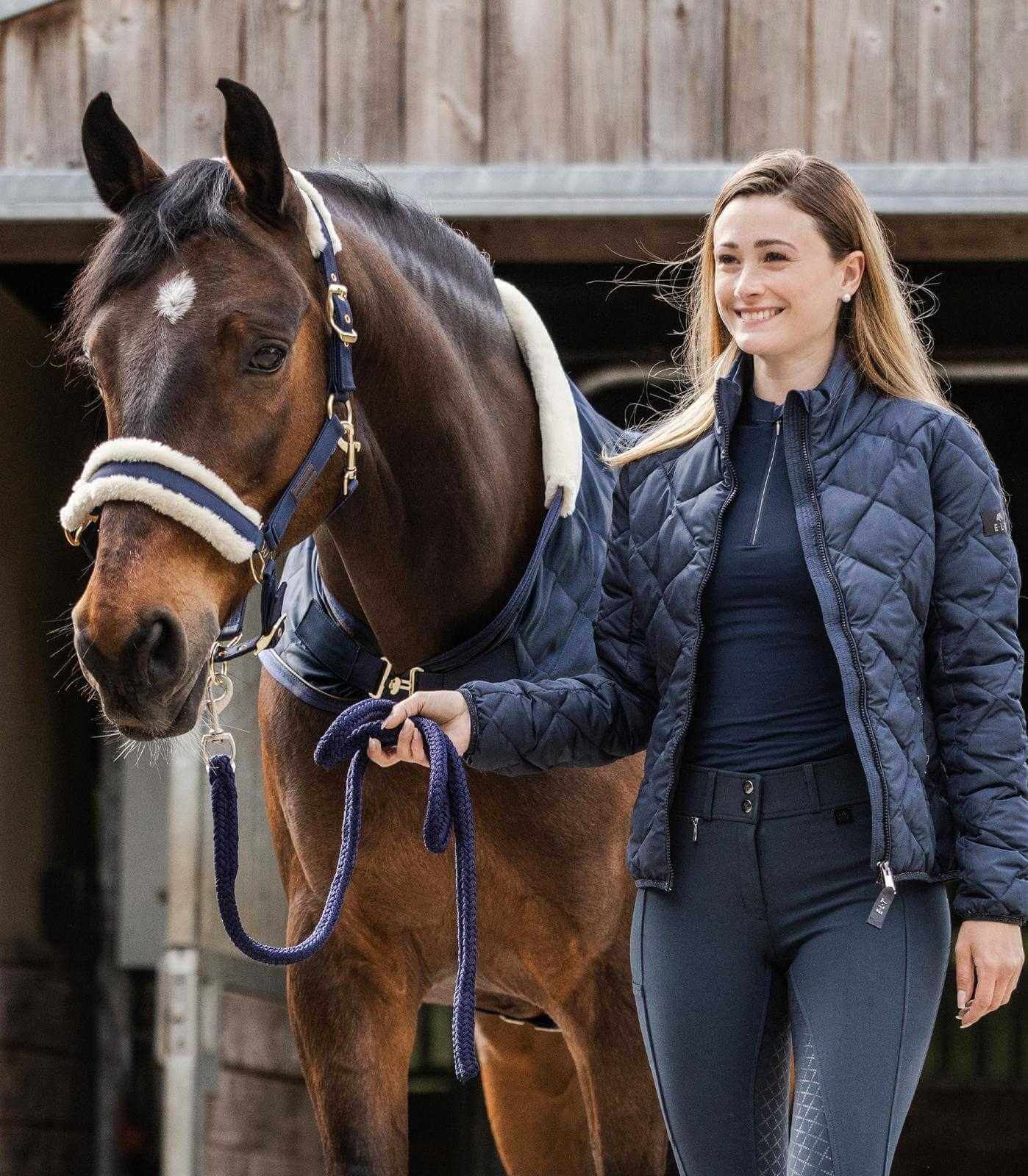 Der Führstrick Exclusive beeindruckt durch sein luxuriöses Erscheinungsbild mit goldfarbenen Beschlägen, die einen Hauch von Eleganz verleihen. Erhältlich in den stilvollen Farben Schwarz und Nachtblau, passt er zu jedem Outfit und vervollständigt dein Reitzubehör harmonisch. Die hochwertige Verarbeitung sorgt für eine angenehme Haptik und langlebige Optik.