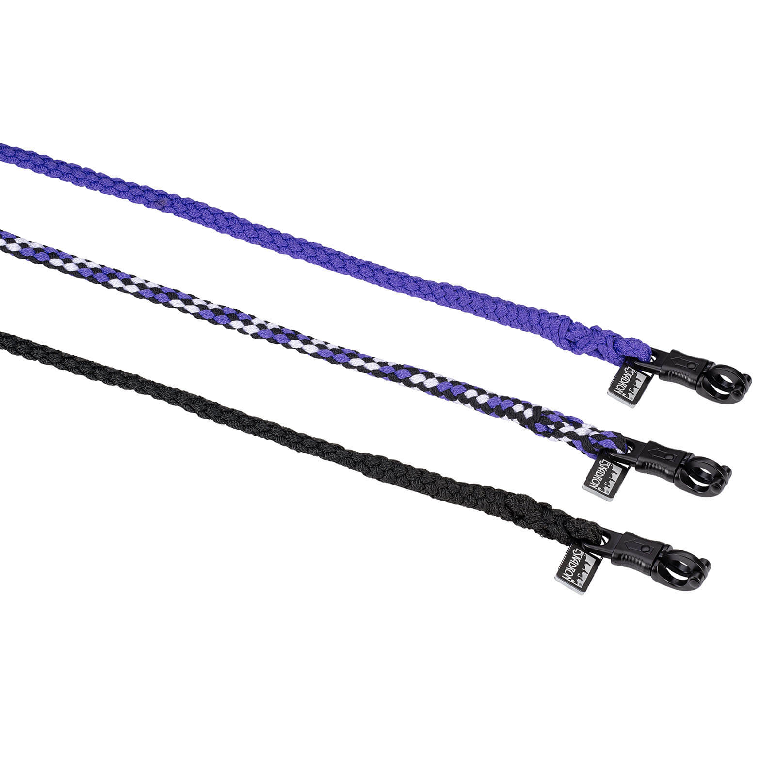 Der Anbindestrick besticht durch seine geflochtene Struktur aus hochwertigem Polypropylen, die nicht nur für eine edle Optik sorgt, sondern auch höchste Widerstandsfähigkeit gewährleistet. Die schwarzen Metallbeschläge und die optionale Farbvariante in black-white-purple verleihen dem Strick einen modernen Look, der sich perfekt in dein Reitzubehör integriert.