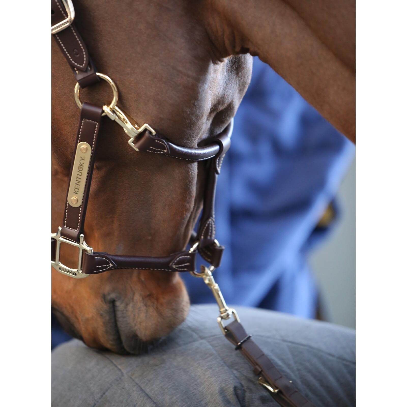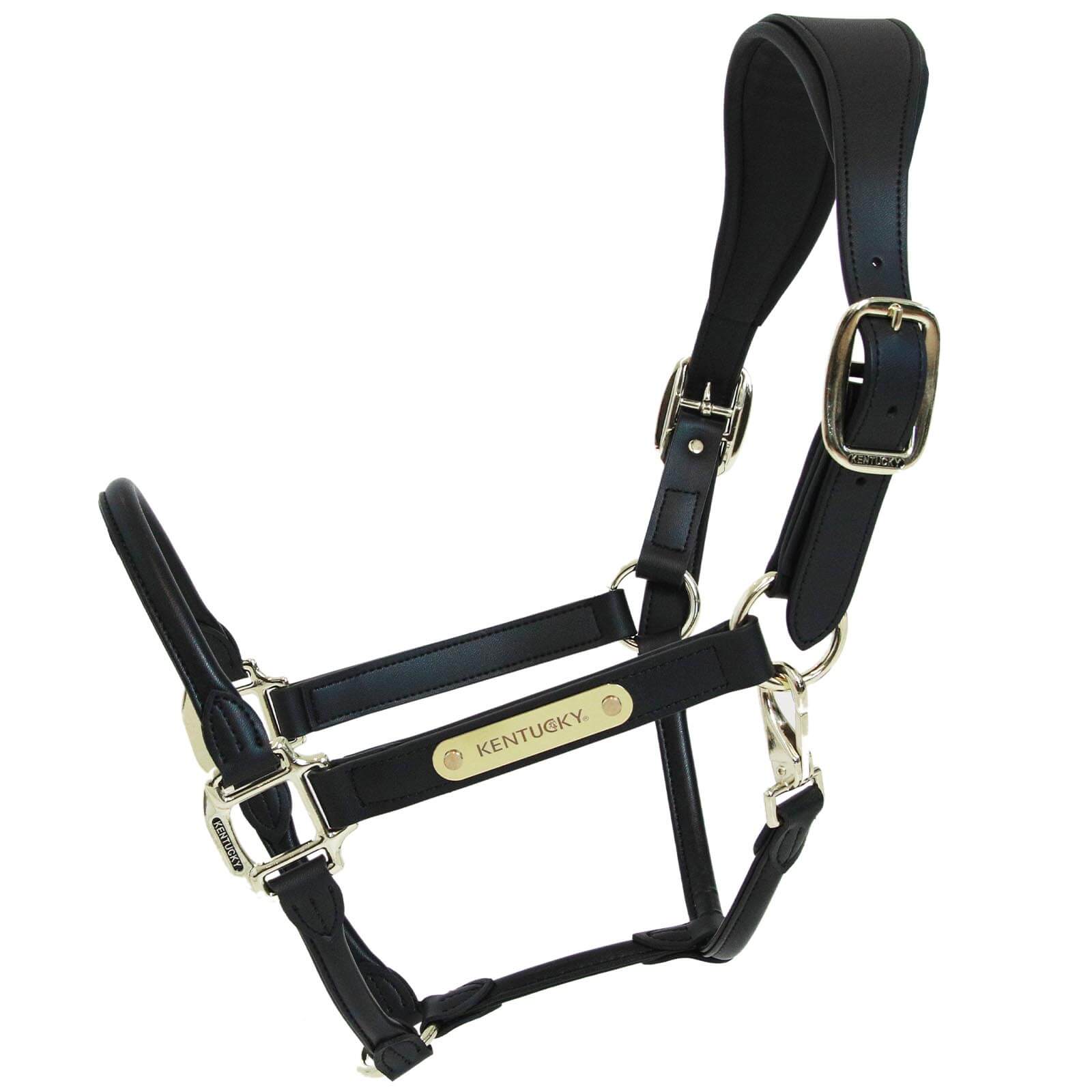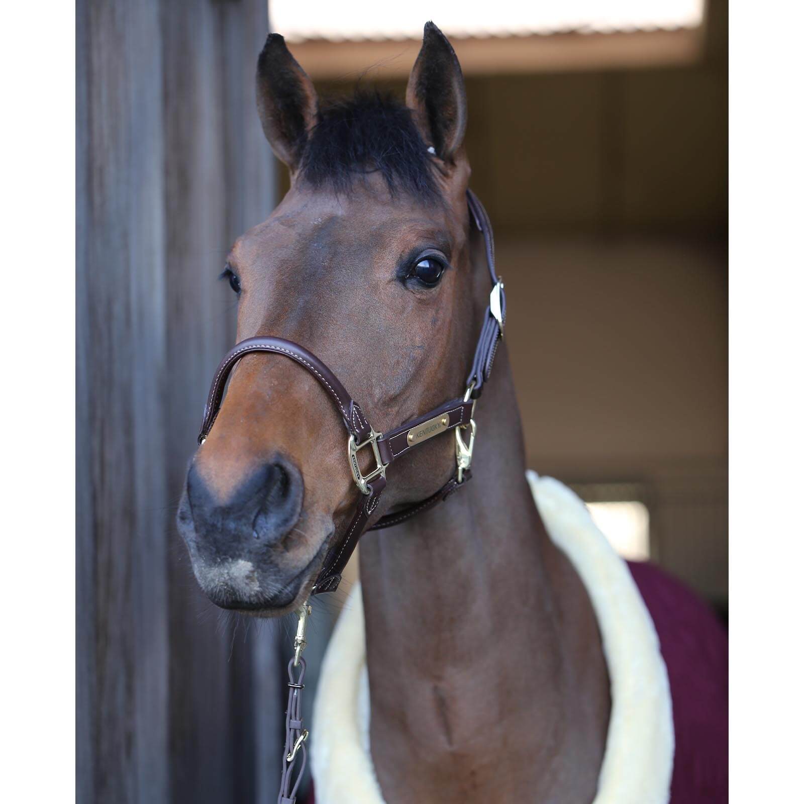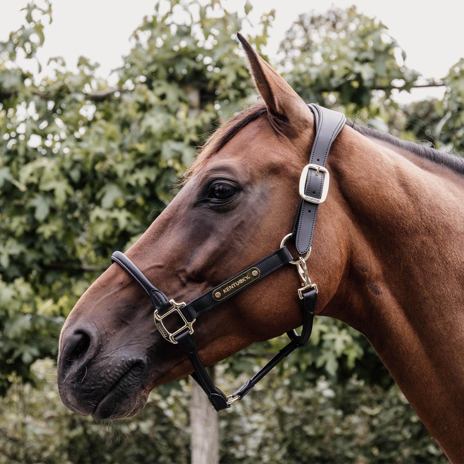 Das Lederhalfter Anatomic besticht durch sein elegantes Design mit einem rundgenähten Nasenstück, das dem Halfter eine besonders edle Note verleiht. Die goldfarbenen Verschlüsse und das umdrehbare Kentucky Emblem setzen stilvolle Akzente. Das speziell geformte Kopfstück sorgt für eine ideale Passform, die den Druck gleichmäßig verteilt und deinem Pferd somit maximalen Komfort bietet.