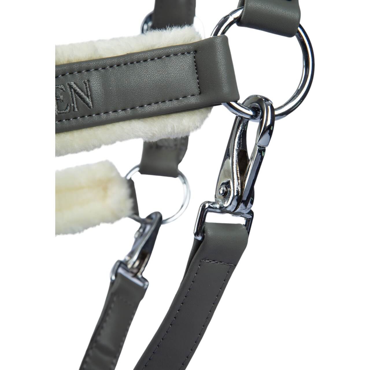 Das Halfter Premium Fluffy FS 2025 beeindruckt mit seiner ansprechenden Mist Green-Farbe, die deinem Pferd einen einzigartigen Look verleiht. Die silbernen Beschläge aus rostfreiem Edelstahl runden das edle Design ab und sorgen für einen stilvollen Auftritt. Mit dem gestickten PS-Logo auf dem Nasenriemen wird jedes Detail zu einem Statement.
