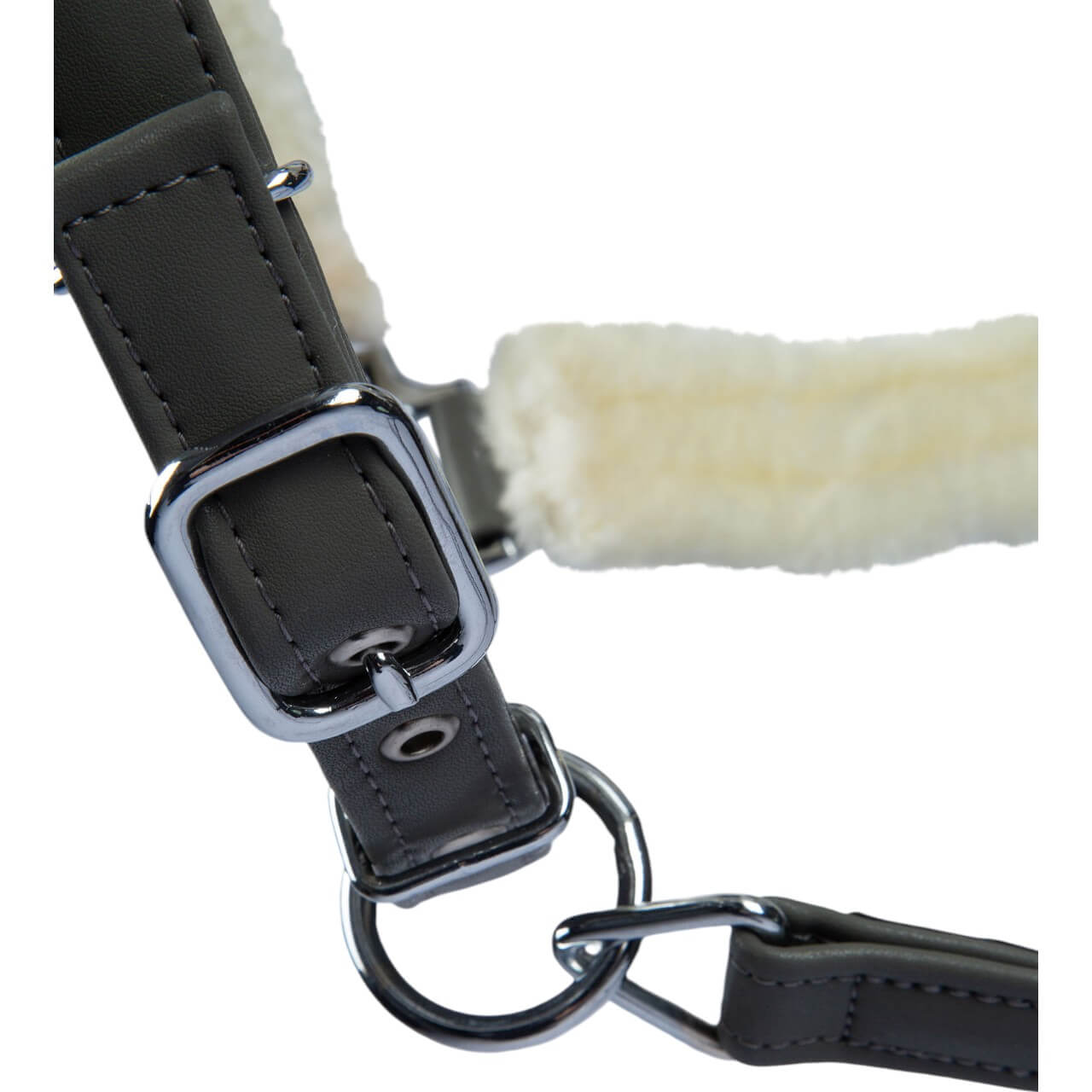 Aus hochwertigem PU-Leder gefertigt, bietet dieses Halfter eine verstärkte Nyloneinlage, die für zusätzliche Stabilität sorgt. Die weiche Polsterung und das Kunstfellfutter verhindern Scheuerstellen und garantieren maximalen Komfort. Die robusten Edelstahlschnallen ermöglichen eine sichere und individuell anpassbare Passform.