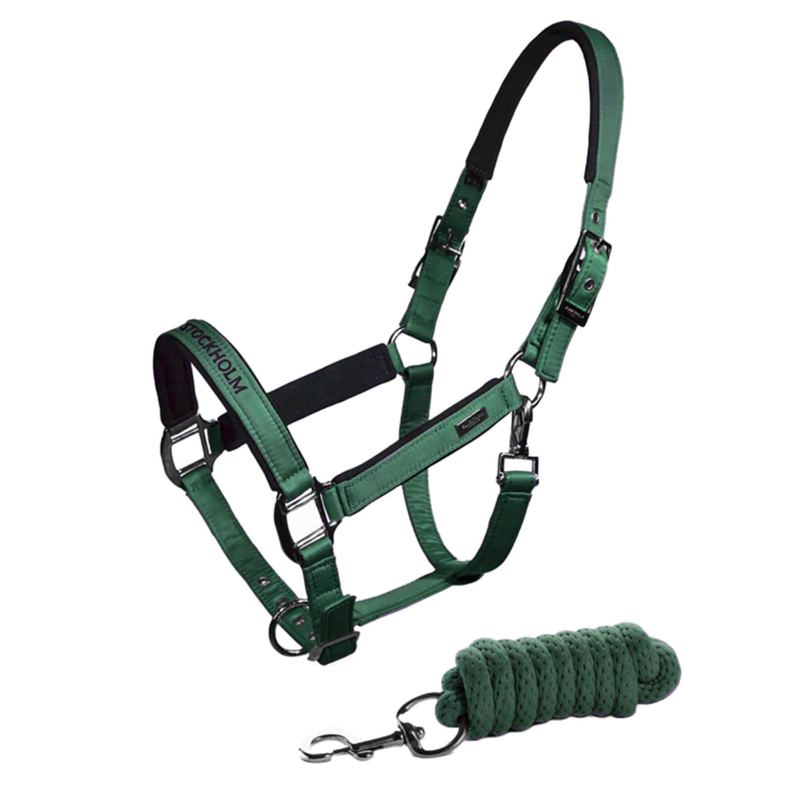 Das Halfter Sycamore Green besticht durch seine tiefe grüne Farbe, die in Kombination mit den schwarzen, glänzenden Schnallen ein echter Hingucker ist. Die elegante Optik wird durch das Equestrian Stockholm Logo auf dem Nasenriemen abgerundet. Dieses Design ist nicht nur schön anzusehen, sondern auch funktional gestaltet, um deinem Pferd den besten Komfort zu bieten.