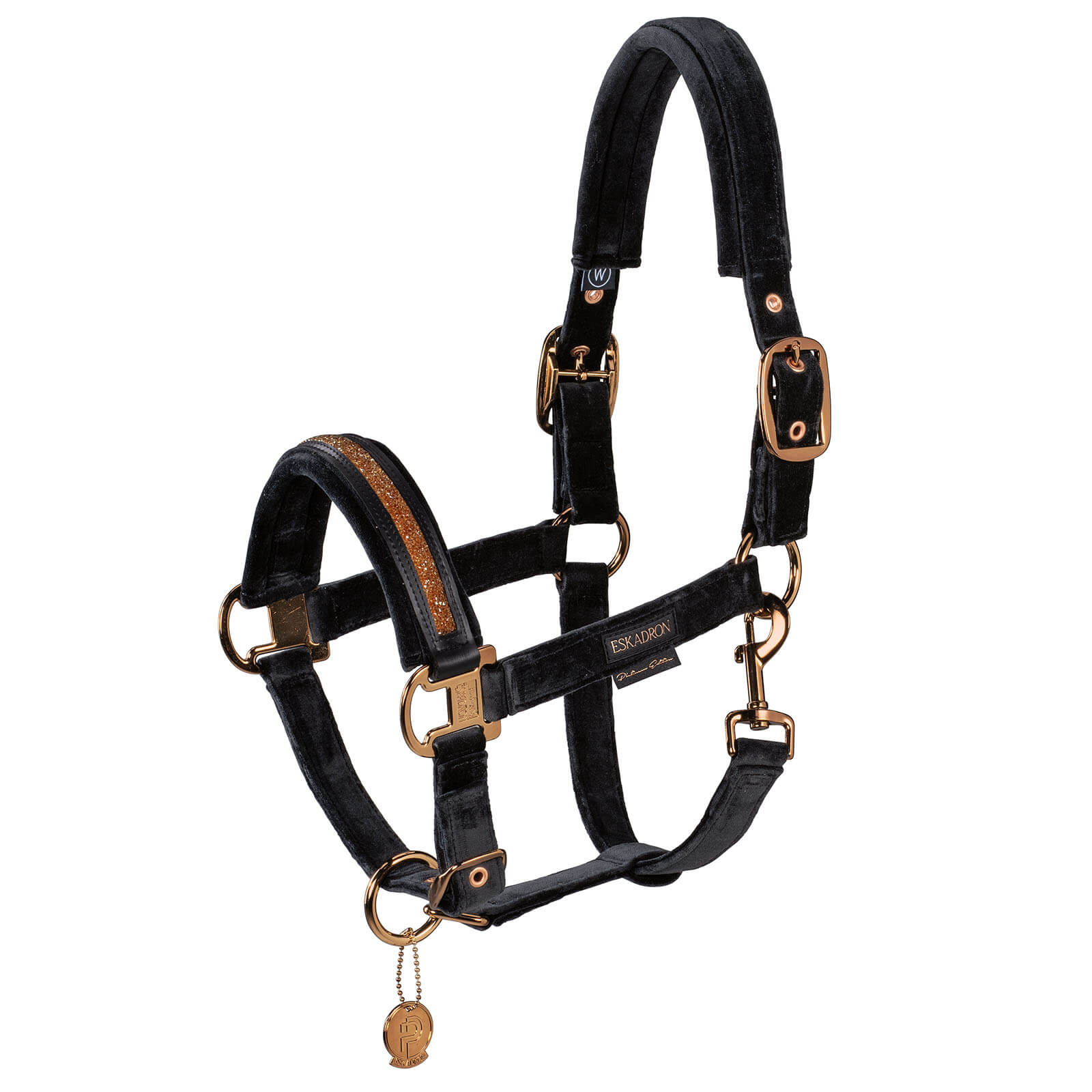 Die edle Samt-Oberfläche des Halfter Double Pin Velvet Jewel verleiht deinem Pferd einen luxuriösen Look, während das eingelegte Kristalltape für zusätzlichen Glanz sorgt. Durch die kupferfarbenen Beschläge erhält das Halfter einen hochwertigen Akzent, der es zu einem echten Blickfang im Stall macht. Die optische Raffinesse wird durch die weichen Polsterungen an Nasen- und Genickstücken ergänzt, die nicht nur für Stil, sondern auch für Komfort sorgen.