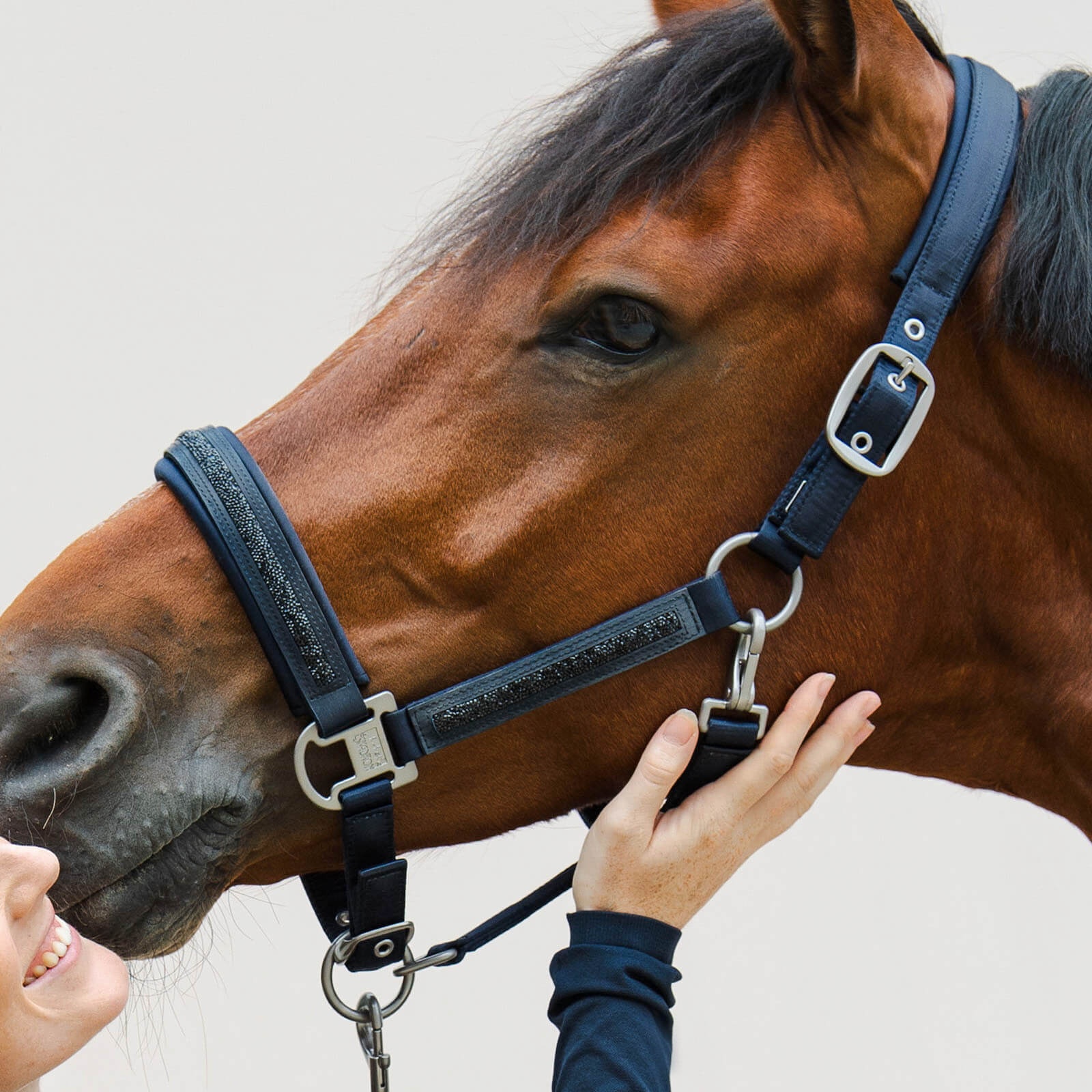Das Halfter beeindruckt durch seine edle Mattgloss-Oberfläche, die mit funkelnden Jewel-Steinen auf dem Nasenband und den Backenstücken abgerundet wird. Diese ästhetischen Akzente verleihen dem Halfter eine luxuriöse Optik, die deinem Pferd einen einzigartigen Auftritt garantiert. Gleichzeitig bietet das Design durch die strategische Platzierung der Polsterungen und Steine einen optimalen Schutz und Komfort.