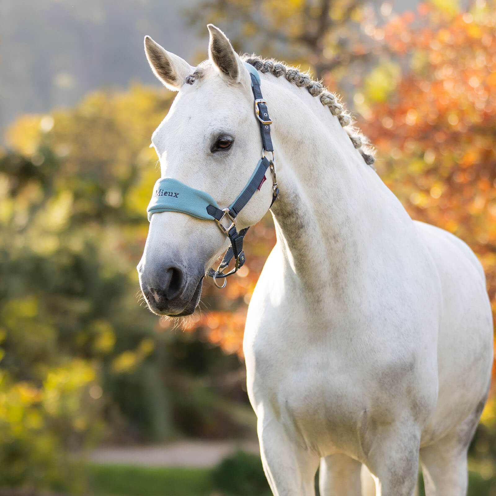Das Halfter Vogue HW 2024 besticht durch seine edle petrolfarbene Optik, die deinem Pferd einen eleganten Look verleiht. Die silberfarbenen Beschläge setzen glänzende Akzente und machen das Halfter zu einem echten Hingucker. Dabei sorgen die Fleece-Einsätze nicht nur für Komfort, sondern auch für eine harmonische Ästhetik.