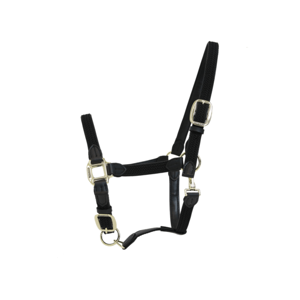 Das geflochtene Nylonhalfter besticht durch seine edle Optik und die goldenen Beschläge, die jedem Pferd einen luxuriösen Look verleihen. Die harmonische Farbpalette, darunter Bordeaux, Navy und Olive Green, ermöglicht eine perfekte Abstimmung auf deine Ausrüstung. Dank der verstellbaren Schnallen am Kinn und an der Seite bietet das Halfter eine maßgeschneiderte Passform für optimalen Komfort.