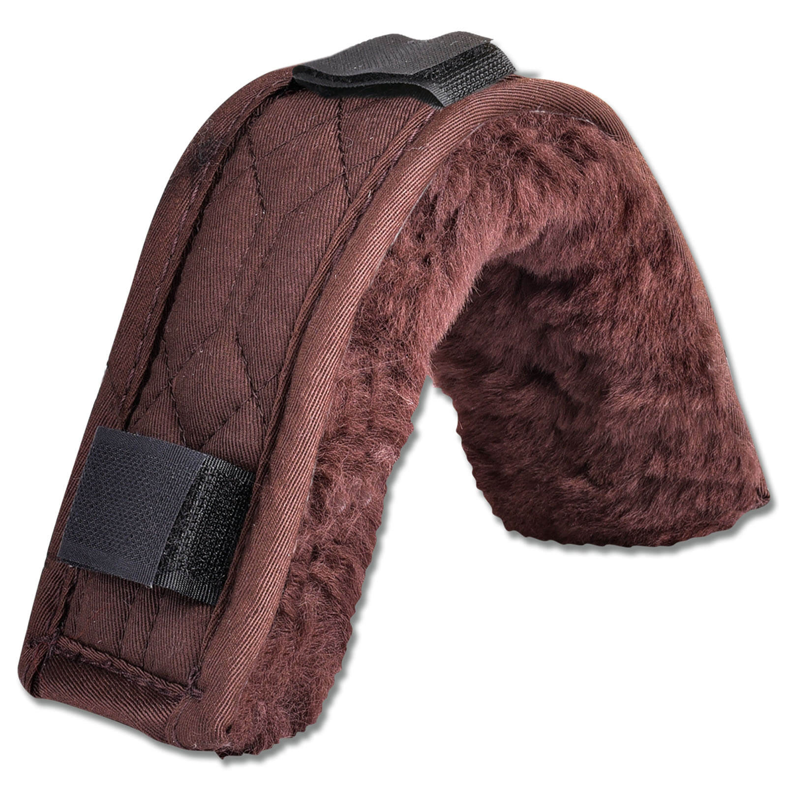 Ausgestattet mit zwei robusten Klettverschlüssen, ermöglicht das Polster eine einfache und schnelle Befestigung an Trensen, Halftern und Kandaren. Die natürliche Standfestigkeit des Lammfells gewährleistet eine optimale Druckverteilung und absorbiert Stöße, um punktuelle Belastungen zu vermeiden. Die atmungsaktive Schafwolle fördert zudem die Luftzirkulation und sorgt für einen ausgeglichenen Temperaturhaushalt.