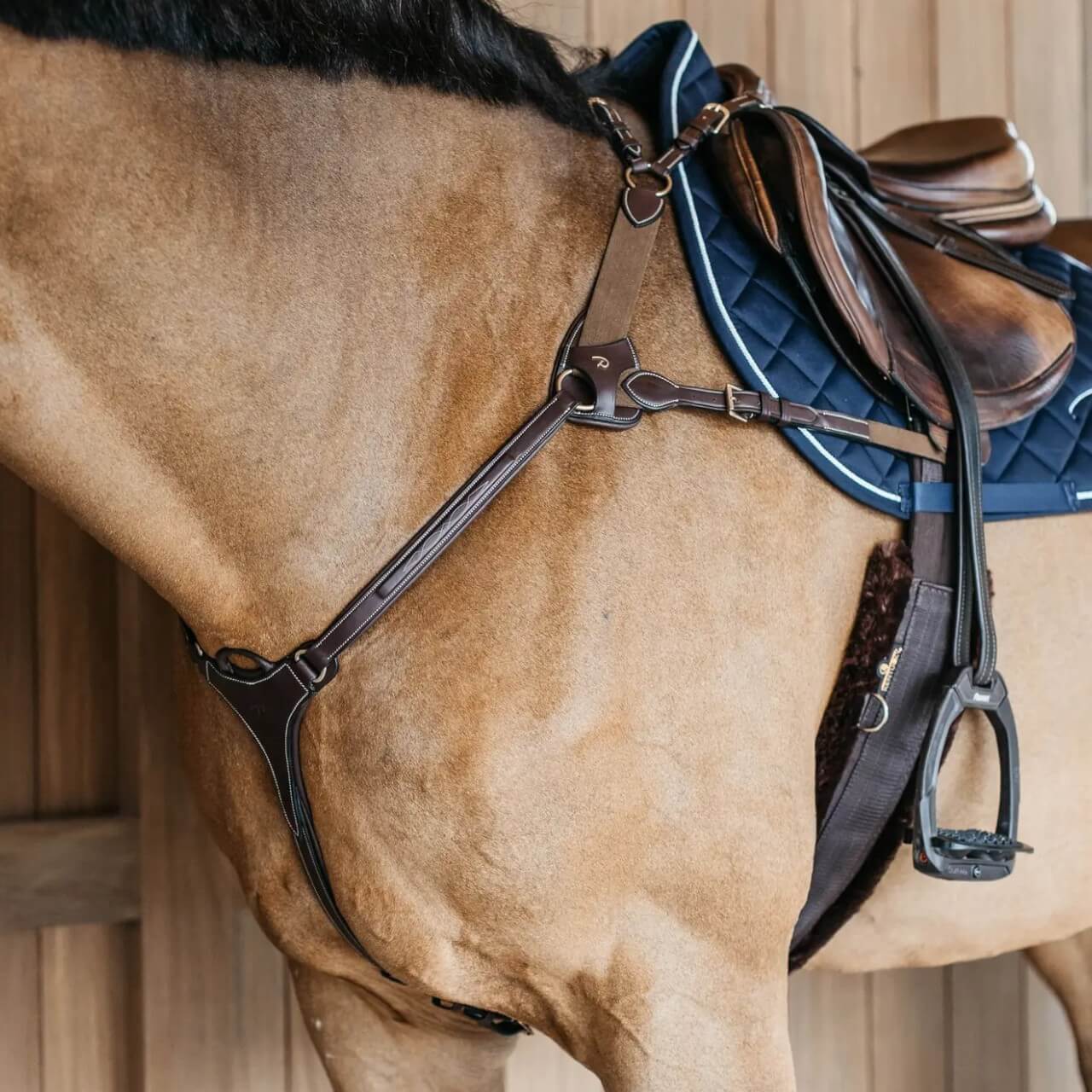 Mit fünf Befestigungspunkten bietet das Vorderzeug von Dy'on außergewöhnliche Stabilität, um das Verrutschen des Sattels zu verhindern. Die Elastikeinsätze passen sich dynamisch den Bewegungen deines Pferdes an und bieten Flexibilität, wo sie benötigt wird. Die gleichmäßige Druckverteilung sorgt dafür, dass sensible Stellen geschont werden, was den Tragekomfort maßgeblich erhöht.