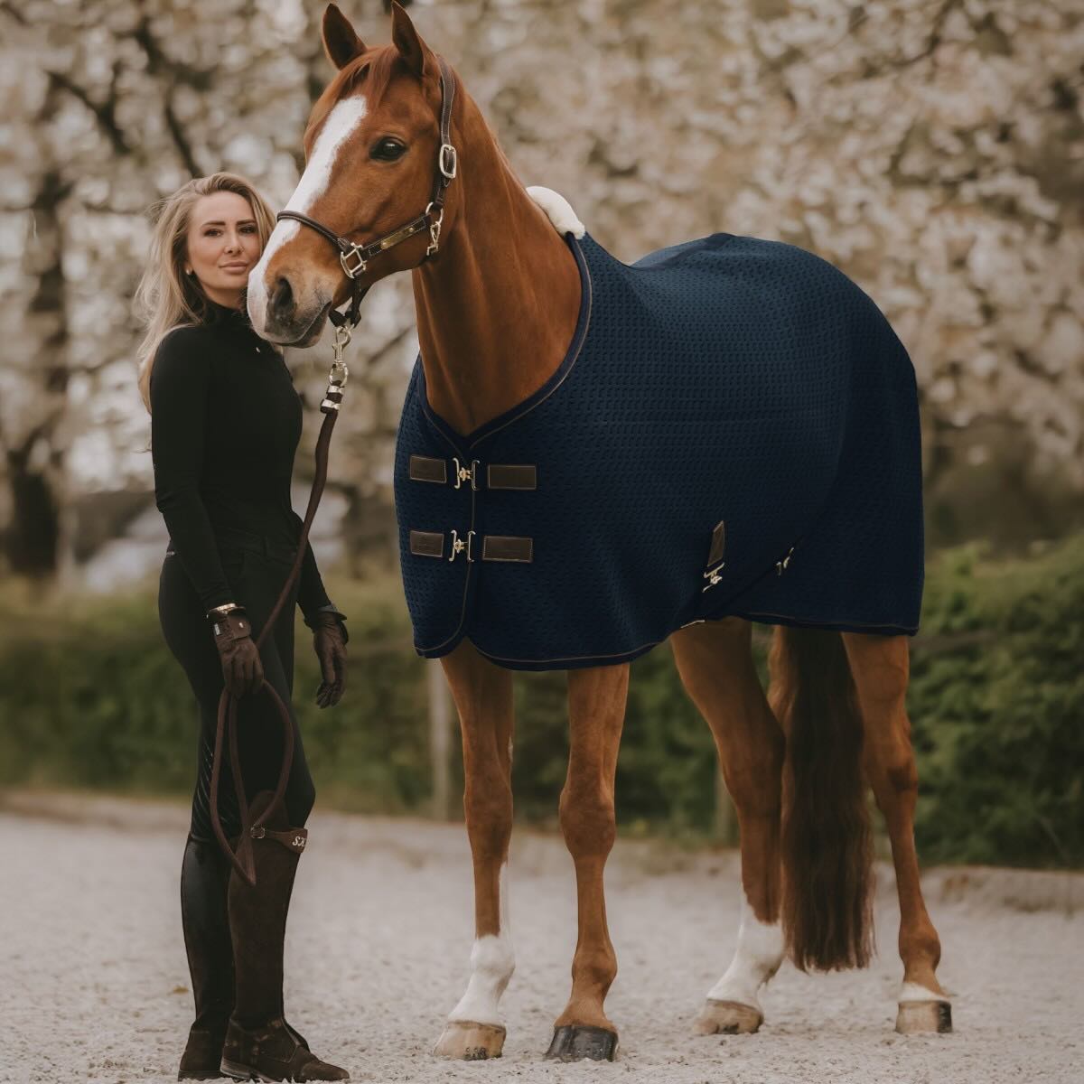Die Abschwitzdecke 4D Spacer Fliegendecke besticht durch ihr klassisches Aussehen und die hochwertige Verarbeitung. Die Wabenstruktur verleiht der Decke nicht nur eine weiche Haptik, sondern auch beeindruckende Widerstandsfähigkeit. Das vegane Lammfell am Widerrist sorgt für zusätzlichen Komfort und verhindert Reibung, während der körpernahe Schnitt die Decke perfekt an die Anatomie deines Pferdes anpasst.
