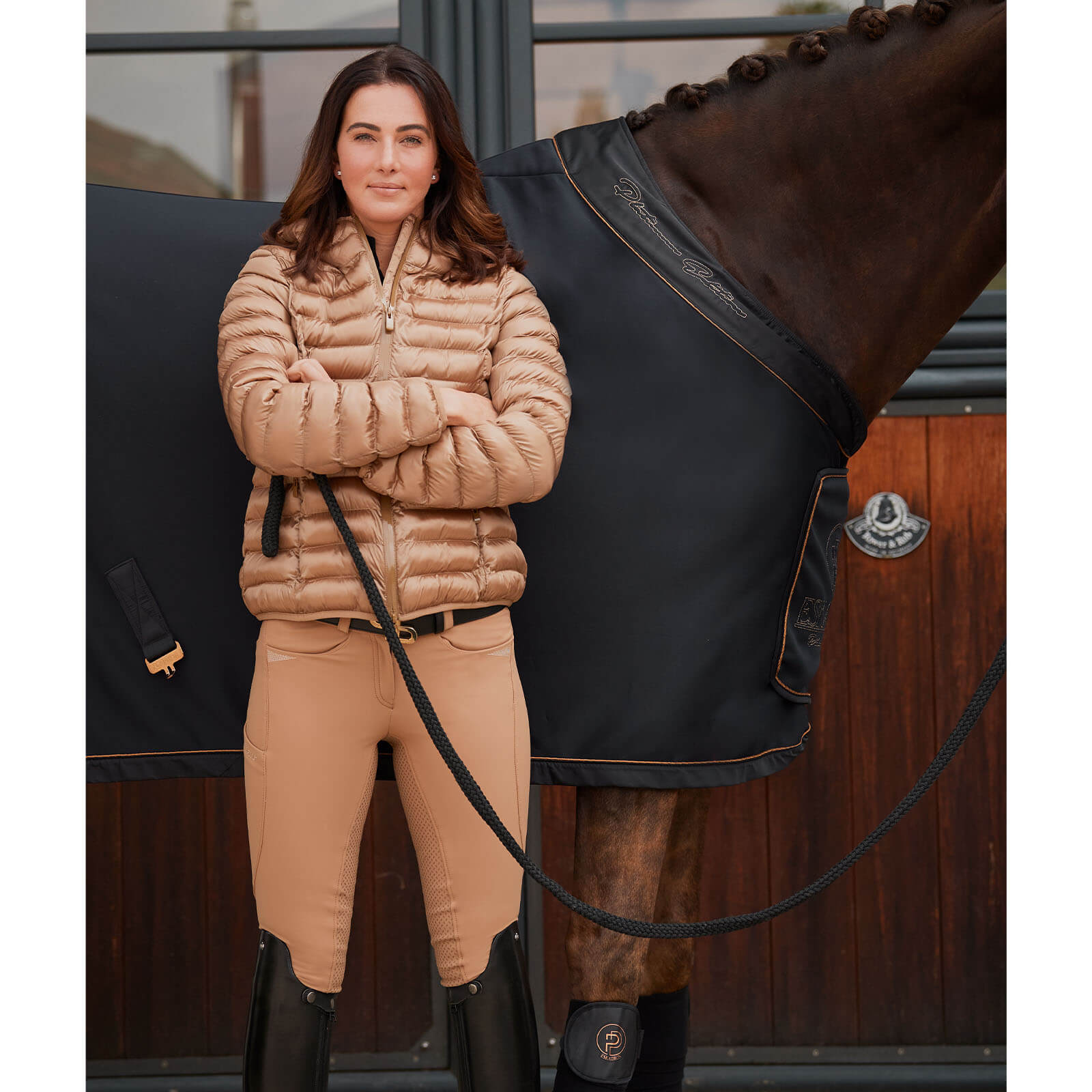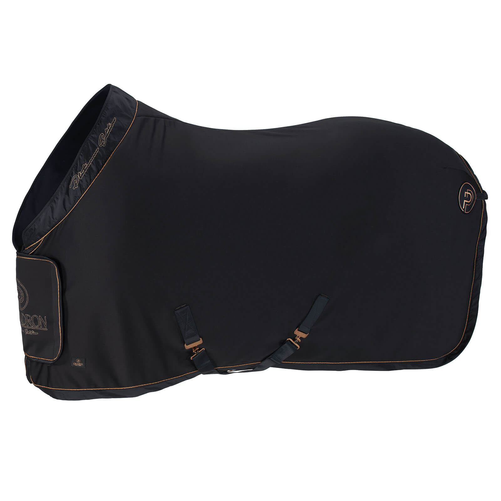 Die Abschwitzdecke besticht durch ihren glänzenden Kragen und die edle Lurex-Biese, die deinem Pferd einen exklusiven Look verleihen. Das strapazierfähige und elastische Softshell-Obermaterial passt sich perfekt an die Körperform deines Pferdes an, während die breite Einfassung für einen sicheren Halt sorgt.
