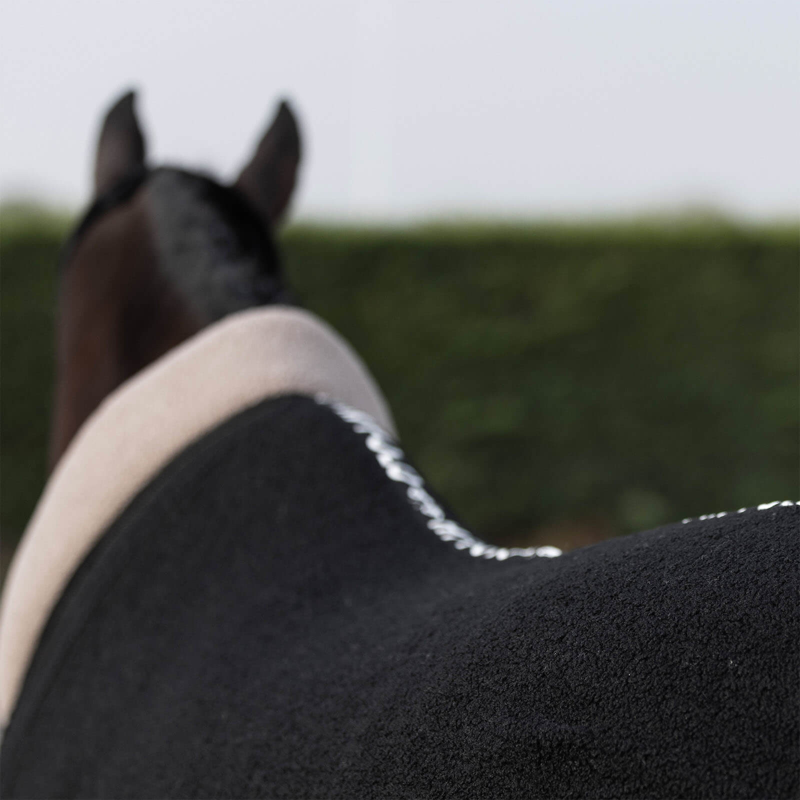 Die HVPHyder HW 2023 Fleecedecke besticht durch ihr edles Aussehen in den Farben Black und Walnut. Der schwere Teddykragen und das ausgefallene Seildetail am Hals und an der Einfassung setzen modische Akzente. Diese Designelemente sorgen nicht nur für ein stilvolles Erscheinungsbild, sondern bieten deinem Pferd auch zusätzlichen Komfort.