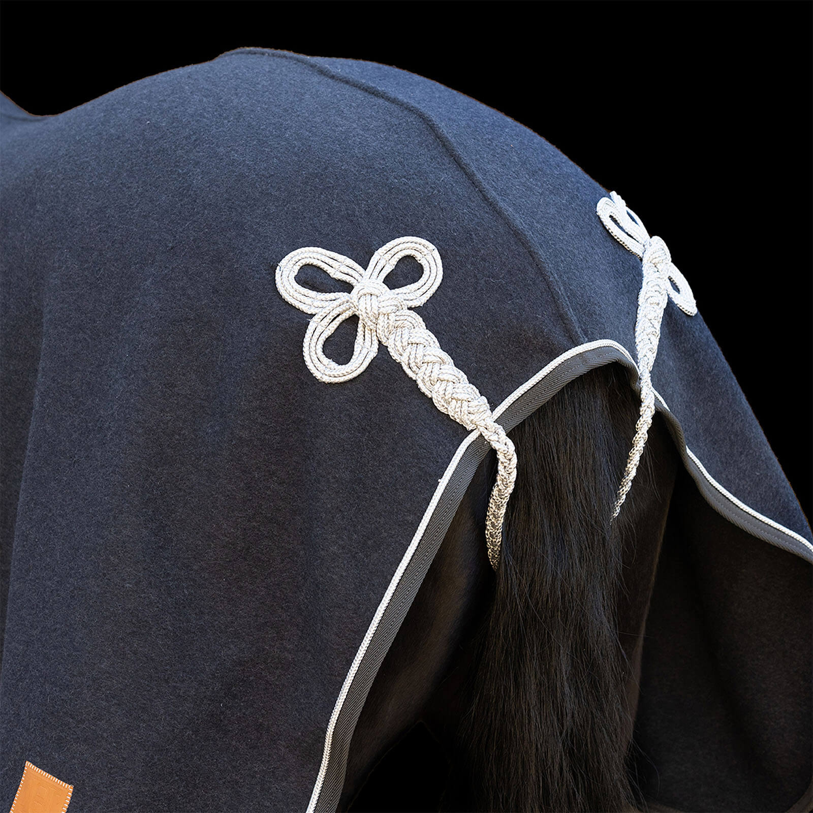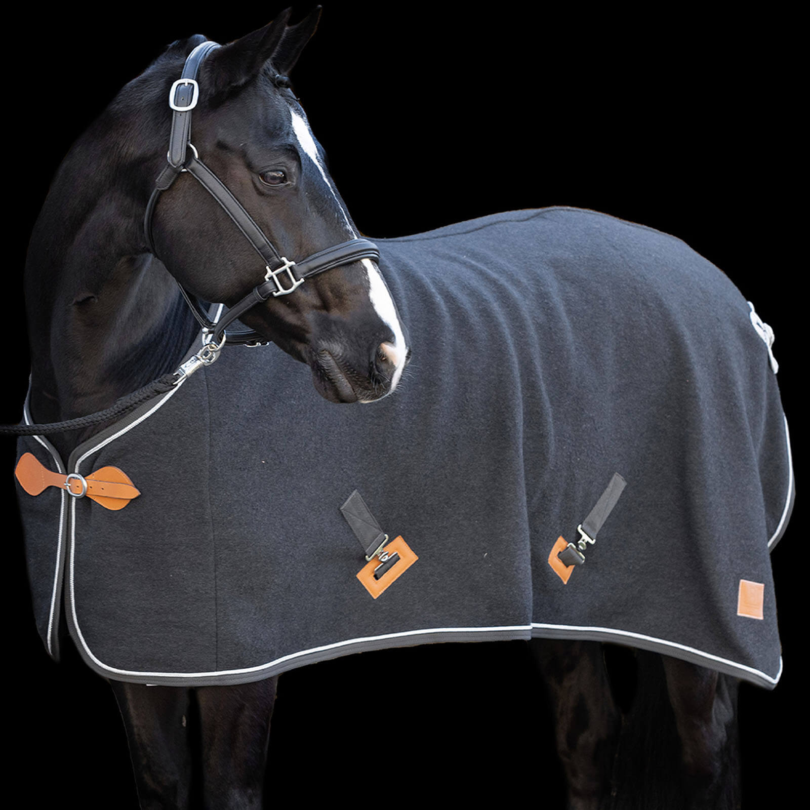 Die Abschwitzdecke HVPScottie HW 2023 besticht durch ihr elegantes Dark Grey melange, das deinem Pferd eine stilvolle Optik verleiht. Der vordere Verschluss aus Leder sowie die schicke Schweifkordel sind nicht nur optische Highlights, sondern sorgen auch für eine sichere und passgenaue Anbringung. Die stilvolle Kordel entlang der Einfassung rundet das edle Design ab und macht die Decke zum perfekten Accessoire für modebewusste Pferdebesitzer.