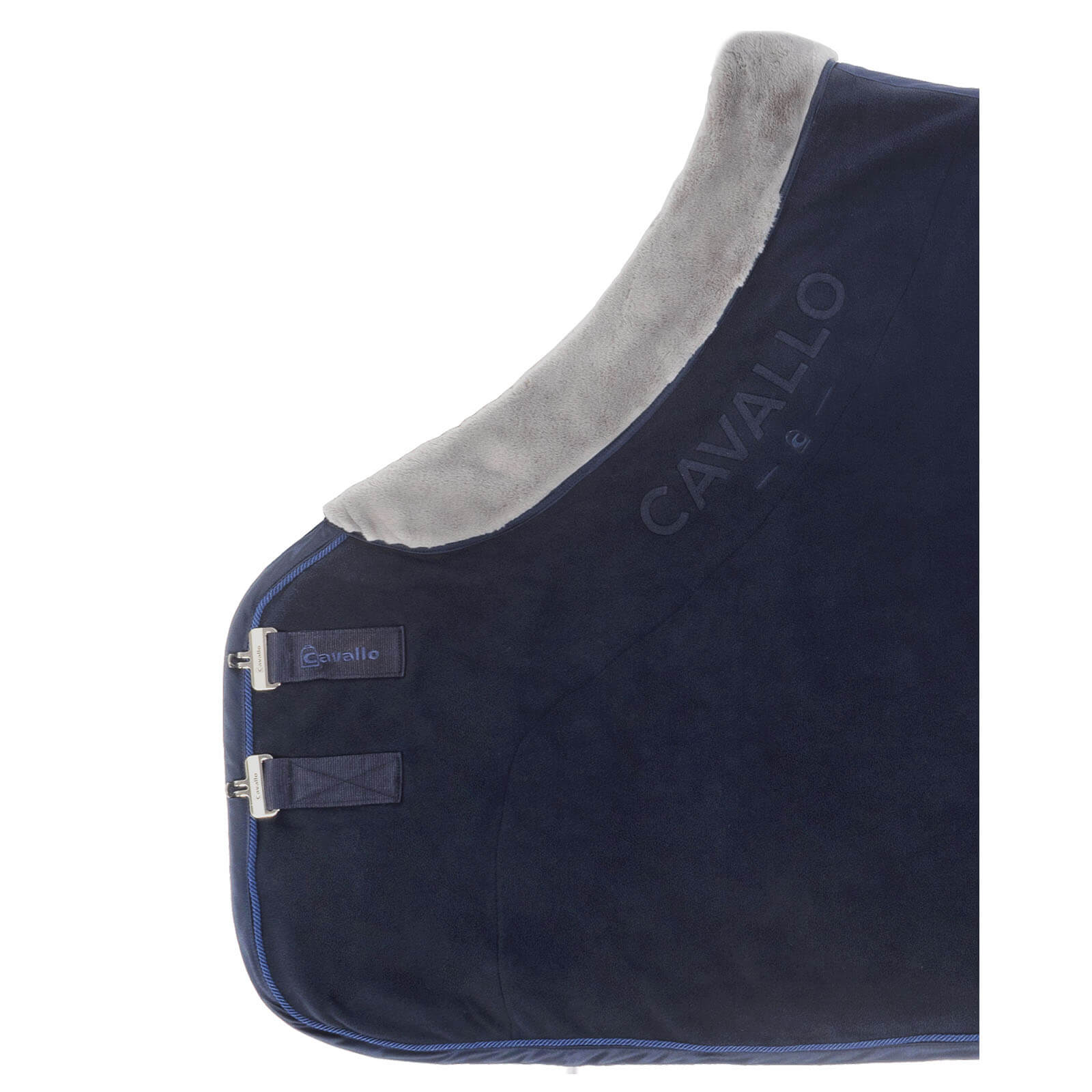 Die Abschwitzdecke besticht mit einem edlen Darkblue-Ton und einer aufwendigen Cavallo-Logo-Stickerei, die sowohl den Halsausschnitt als auch den hinteren Bereich ziert. Der weiche Kunstfellkragen am Widerrist schützt vor Scheuerstellen und bietet zusätzlichen Komfort. Die kontrastfarbigen Kordeln erhöhen nicht nur die Sichtbarkeit, sondern verleihen der Decke auch einen exklusiven Look.