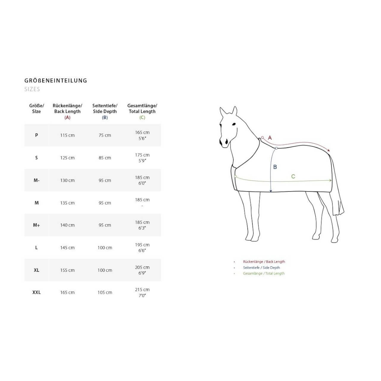 Gefertigt aus Anti-Pilling-Fleece, bietet die Decke eine hervorragende Atmungsaktivität und transportiert Feuchtigkeit effizient nach außen. Die Doppelbrustverschnallung mit Klettfixierung und die abnehmbare Kreuzbegurtung sorgen für einen sicheren Sitz ohne Verrutschen. Der integrierte Schweifriemen erhöht zusätzlich die Stabilität und den Komfort.