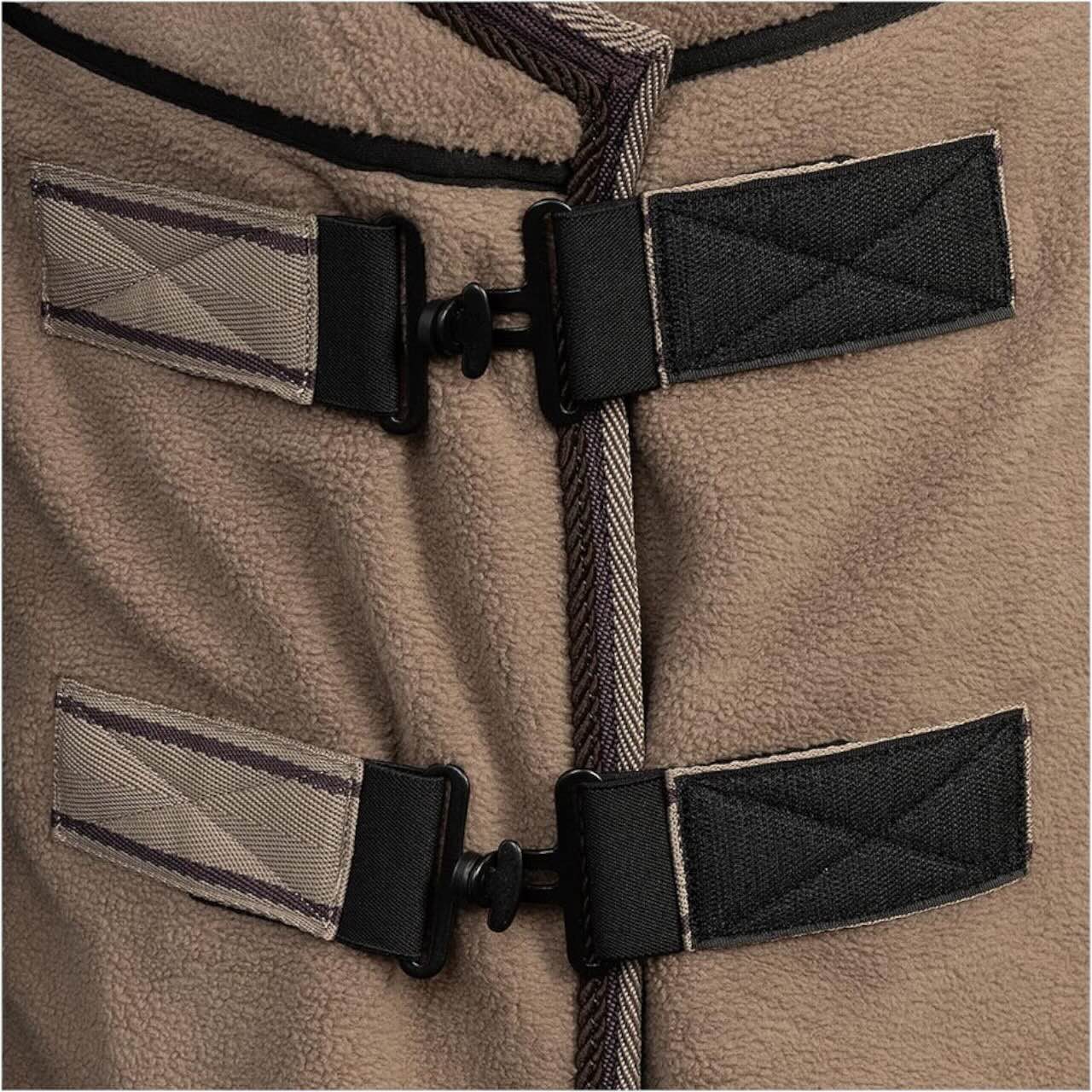 Die Außenseite aus Anti-Pilling-Fleece macht die BR Abschwitzdecke besonders pflegeleicht und langlebig. Im Inneren sorgt das atmungsaktive Fleece für einen ausgewogenen Temperaturausgleich. Die Beschläge in Gun Metal setzen einen modernen Akzent und sind robust verarbeitet. Zwei vordere Schnallen werden elegant von einer Brustklappe verdeckt, die der Decke einen luxuriösen Look verleiht. Zusätzlich sorgen verdeckte, verstellbare Kreuzgurte für sicheren Halt. Eine praktische Schweifkordel rundet die Ausstattung ab.