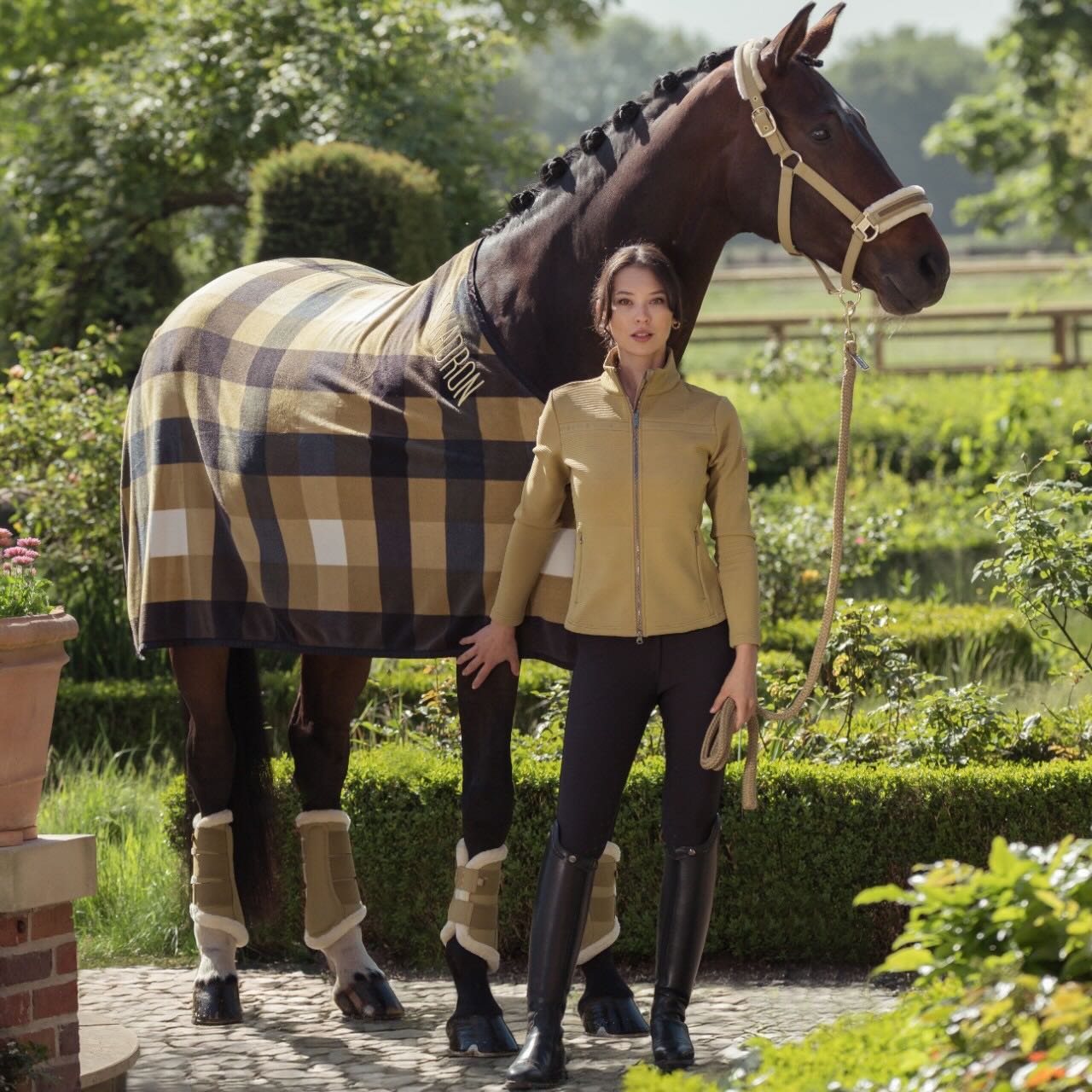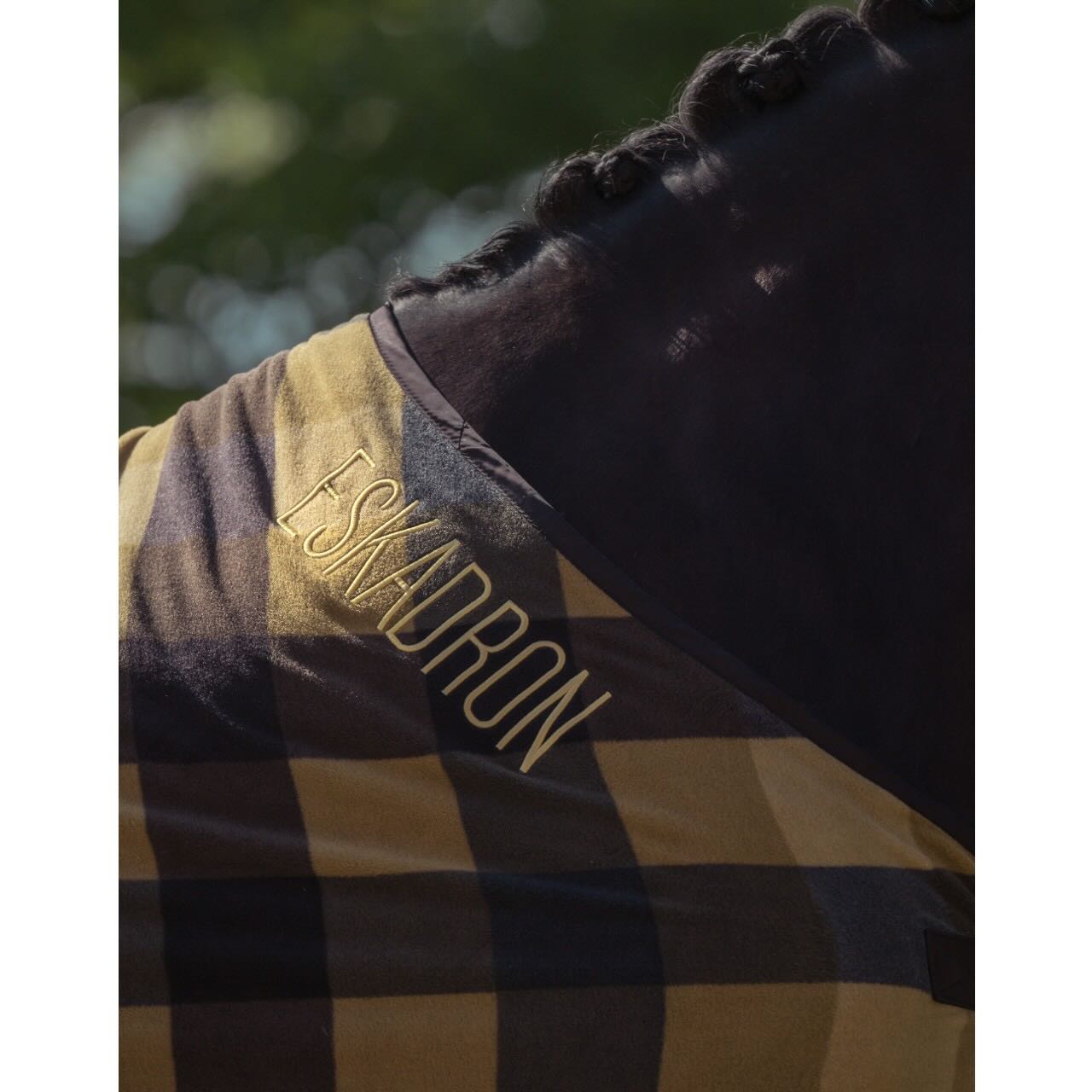 Die Eskadron Abschwitzdecke Check Heritage 2025 Fleecedecke vereint elegantes Design mit hochwertiger Funktionalität. Das klassische Karo-Muster und der markante Eskadron-Schriftzug verleihen der Decke einen exklusiven Look, während das atmungsaktive Fleece für optimalen Komfort sorgt – ideal für Training, Transport oder nach dem Reiten.