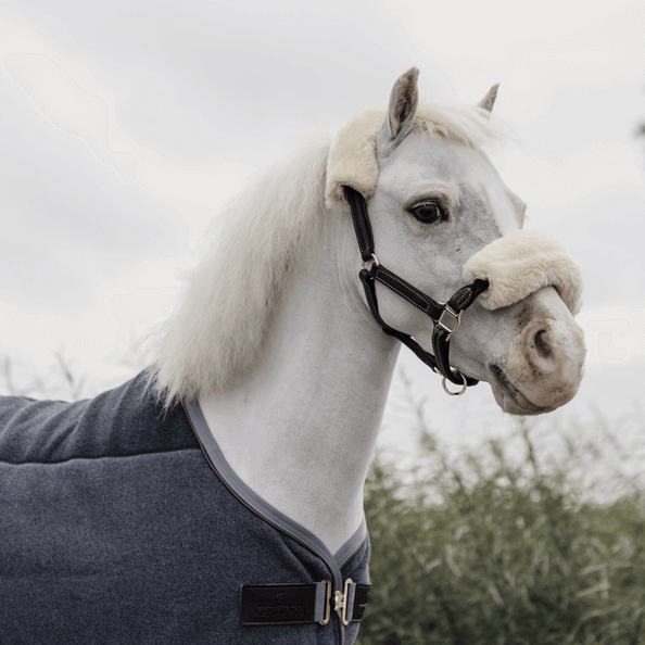 Die Abschwitzdecke Heavy Fleece Tiny Ponydecke besticht durch ihre wollähnliche Anmutung und die edlen Lederbordüren. Das künstliche Schaffell am Widerrist bietet nicht nur zusätzlichen Komfort, sondern verhindert auch unangenehme Druckstellen. Der elegante Vorderverschluss rundet das hochwertige Design ab und macht diese Decke zum stilvollen Begleiter auf jedem Turnier.