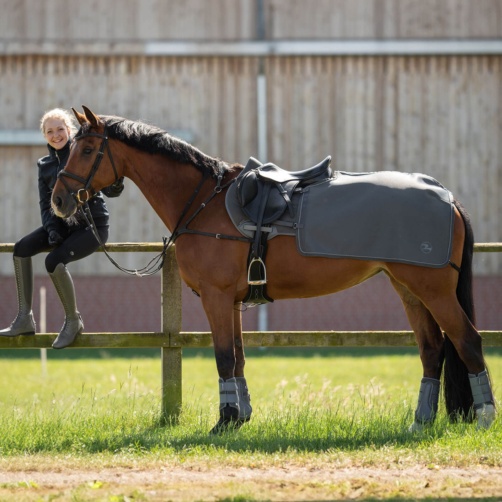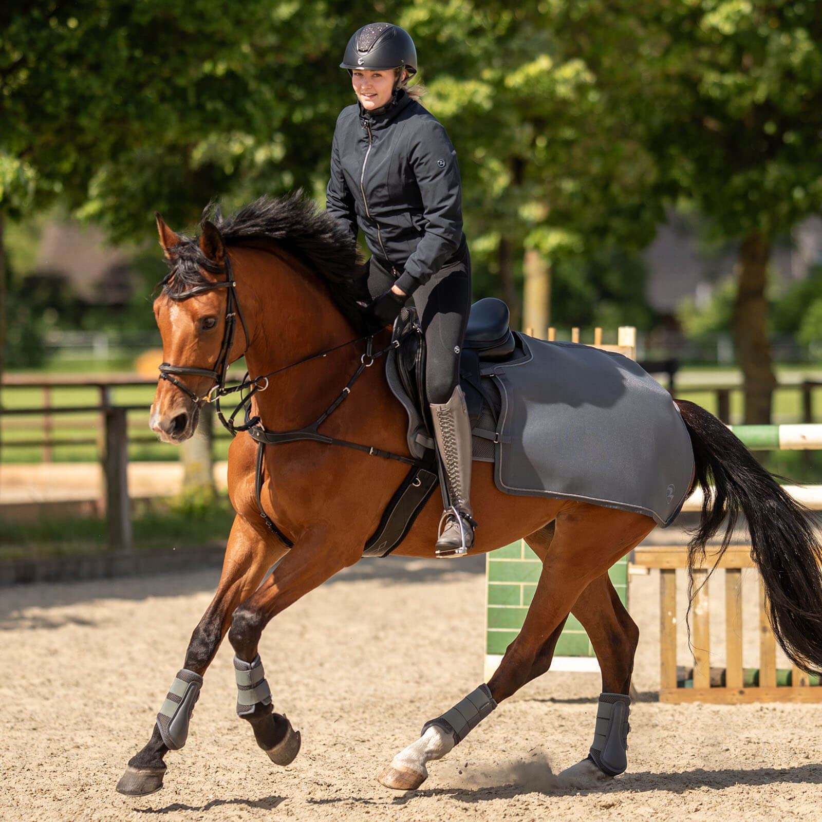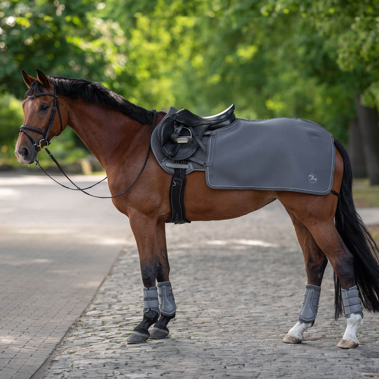 | Extras | Atmungsaktiv, Einfassband farblich abgestimmt mit eleganter Zierkordel, elastischer, einstellbarer Hinterhandgurt, vier Klettverschluss-Schlaufen |