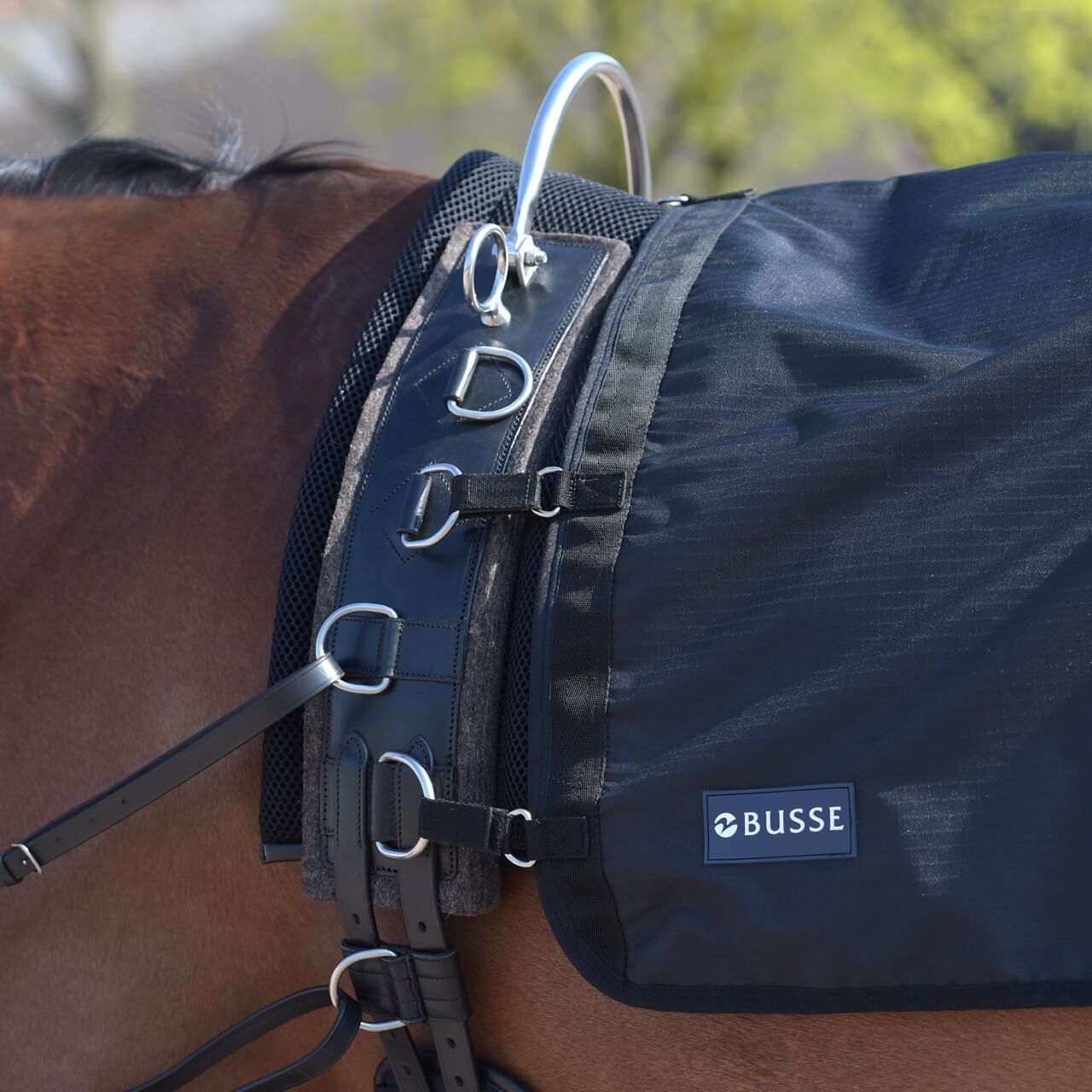 - zum Schutz vor Wind, Regen und Kälte im Bereich Sattellage, Nieren, Kruppe und Flanken beim Longieren oder der Bodenarbeit