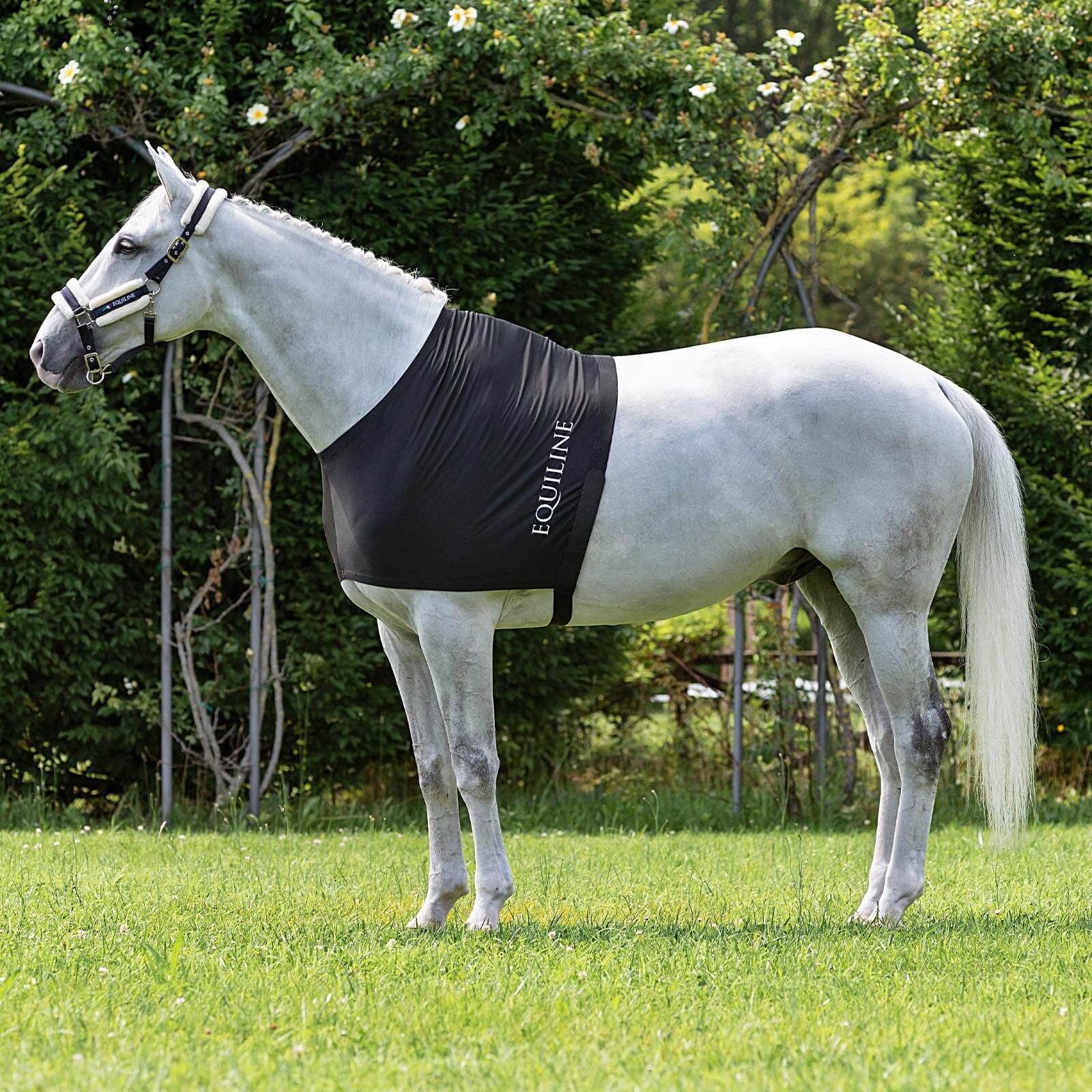 Der Brustschutz Edinburgh kommt in einem schlichten, funktionalen Look mit dem dezenten Equiline Logo. Das schwarze Lycra-Material schmiegt sich an dein Pferd an und verleiht ihm eine edle Optik, während es gleichzeitig vor äußeren Einflüssen schützt. Sein minimalistisches Design passt zu jeder Pferdedecke und setzt dein Pferd optisch in Szene.