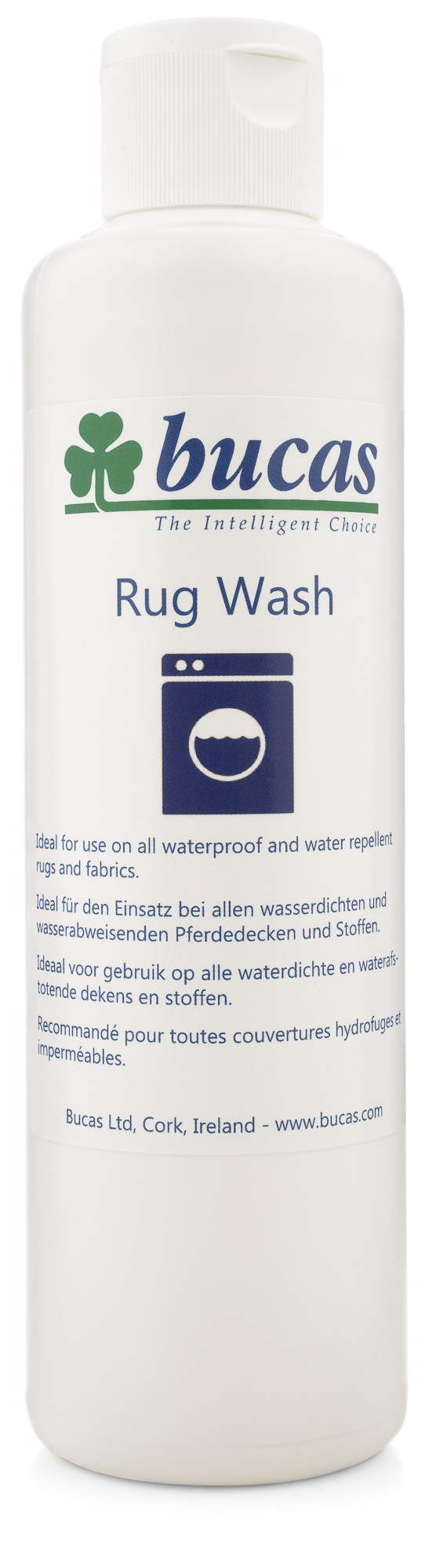 Die Bucas Rug Wash ist ideal für den Einsatz bei allen wasserdichten und wasserabweisenden Pferdedecken und Stoffen. Vollständige Garantie auf Bucas Produkte nur bei Verwendung des Original Bucas Waschmittels.