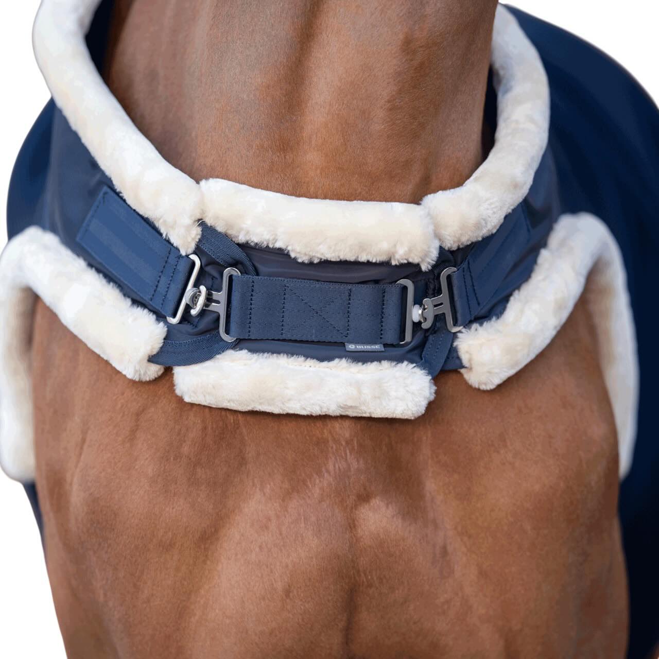 Die Materialien dieser Brusterweiterung sind gezielt auf die Bedürfnisse empfindlicher Pferde abgestimmt. Das fellfreundliche Satinlining verhindert Haarbruch und Scheuerstellen. Das atmungsaktive Polyestersatin gewährleistet ein angenehmes Klima unter der Decke. Das Kunstfell aus Polyester sorgt für zusätzliche Polsterung und einen weichen Abschluss. Damit vereint das Produkt Funktionalität, Komfort und Qualität in einem durchdachten Konzept. Ideal für Pferde, die besonderen Wert auf Bewegungsfreiheit und Wohlbefinden legen.