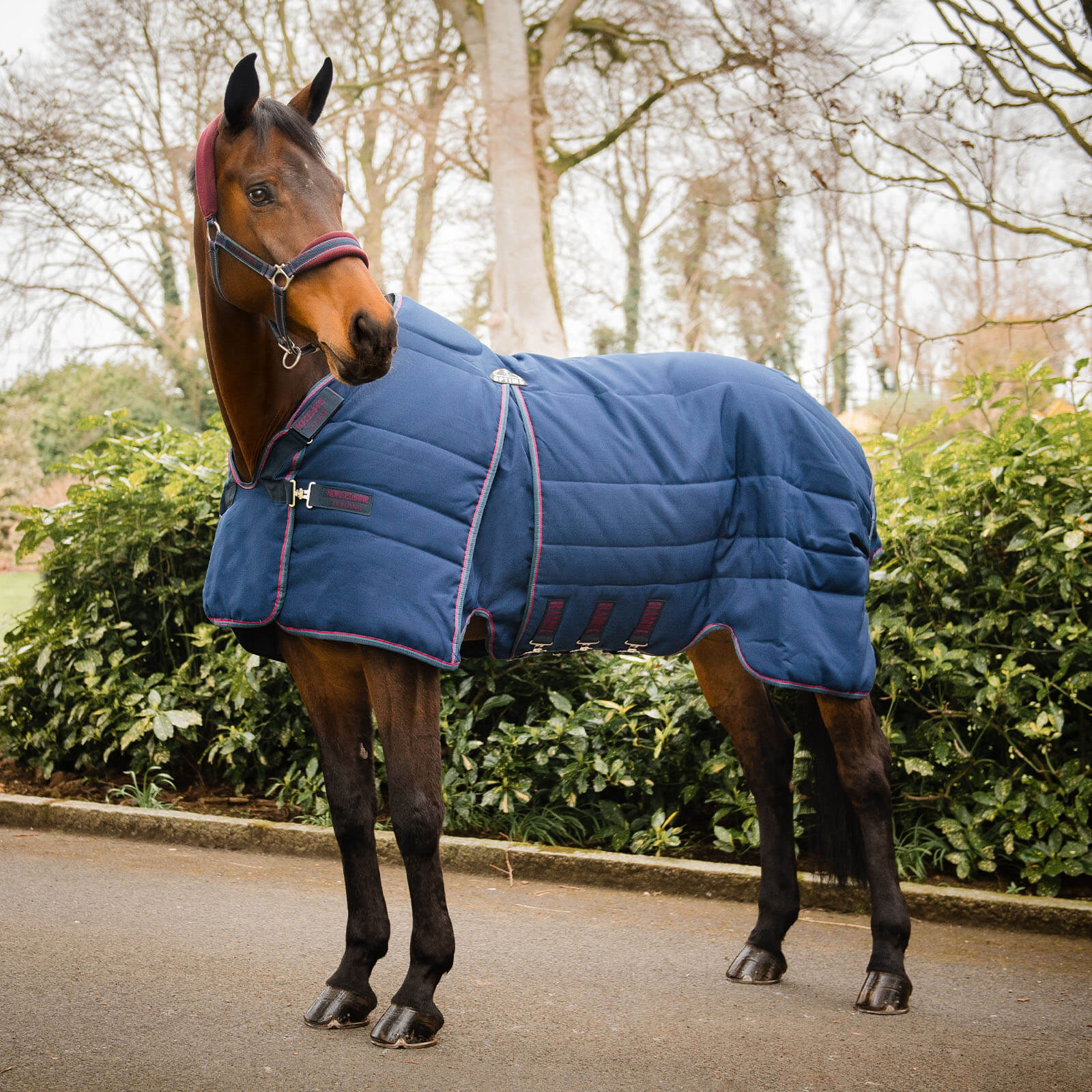 Die Rambo Optimo Stable Rug beeindruckt mit ihrem stilvollen Design in den Farben Navy/Burgundy und Teal/Navy. Das robuste 1000D Ripstop Polyester verleiht der Decke nicht nur ein ansprechendes Äußeres, sondern sorgt auch für Langlebigkeit. Die Farbvarianten passen sich perfekt an den Look deines Pferdes an und bieten gleichzeitig praktische Vorteile wie Schmutzresistenz und einfache Pflege.