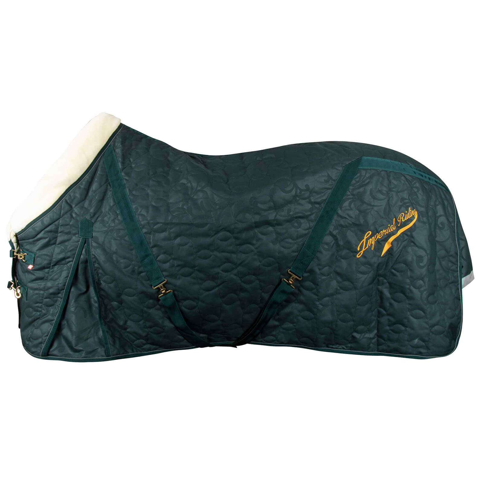 Die Stalldecke 100g IRHSuper-dry Winterdecke HW 2023 besticht durch ihre stilvolle Farbe in Forest Green und den weichen Kunstpelzkragen, der nicht nur edel aussieht, sondern auch zusätzlichen Komfort bietet. Die verstärkte Gehfalte gewährleistet maximale Bewegungsfreiheit, während dein Pferd im Stall glänzt.