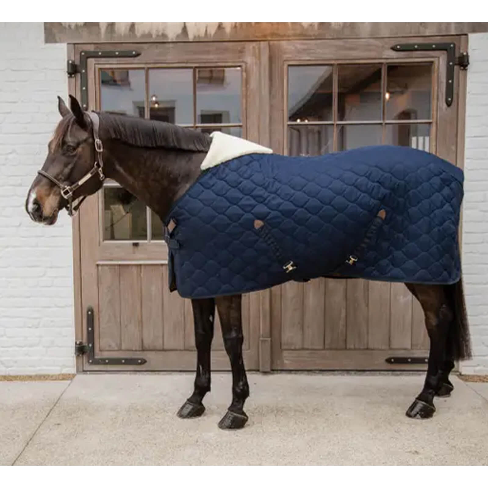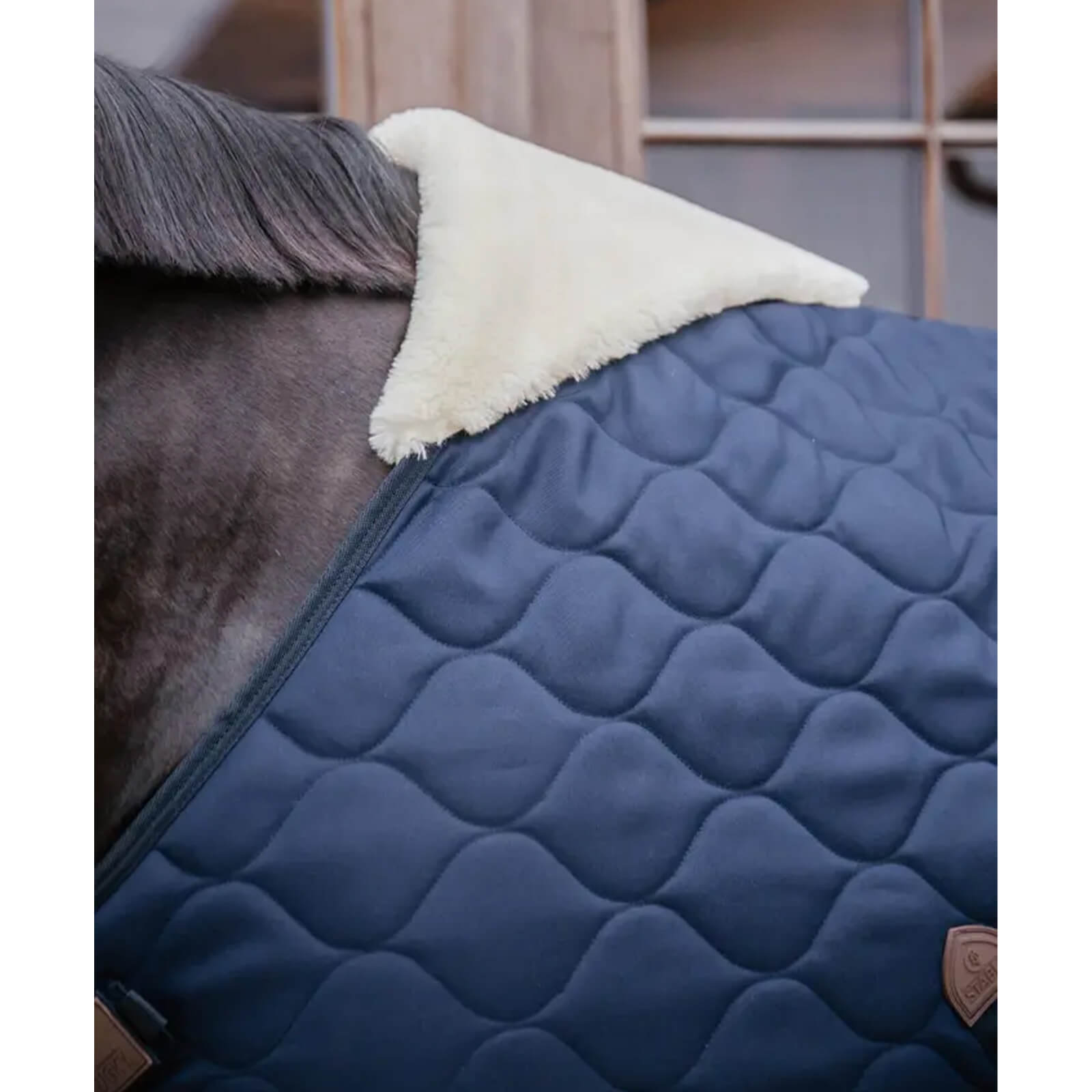Die Stalldecke besticht durch ihre marineblaue Farbe und das elegante Steppmuster, das nicht nur optisch ansprechend ist, sondern auch für zusätzliche Stabilität sorgt. Die anatomische Form der Decke passt sich perfekt an den Körper deines Pferdes an und unterstützt so die Bewegungsfreiheit.