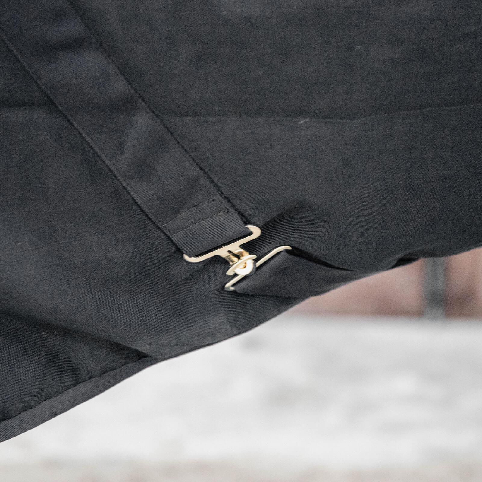 Die Stalldecke 300g Classic Winterdecke besticht durch ihr zeitloses Design in den Farben Marine und Schwarz. Das hochwertige Aussehen wird durch die strapazierfähigen Materialien unterstützt, die selbst bei intensiver Nutzung ihre Form bewahren. Der Ripstop-Stoff sorgt dafür, dass die Decke widerstandsfähig gegen Risse ist und Späne leicht abgestoßen werden können.