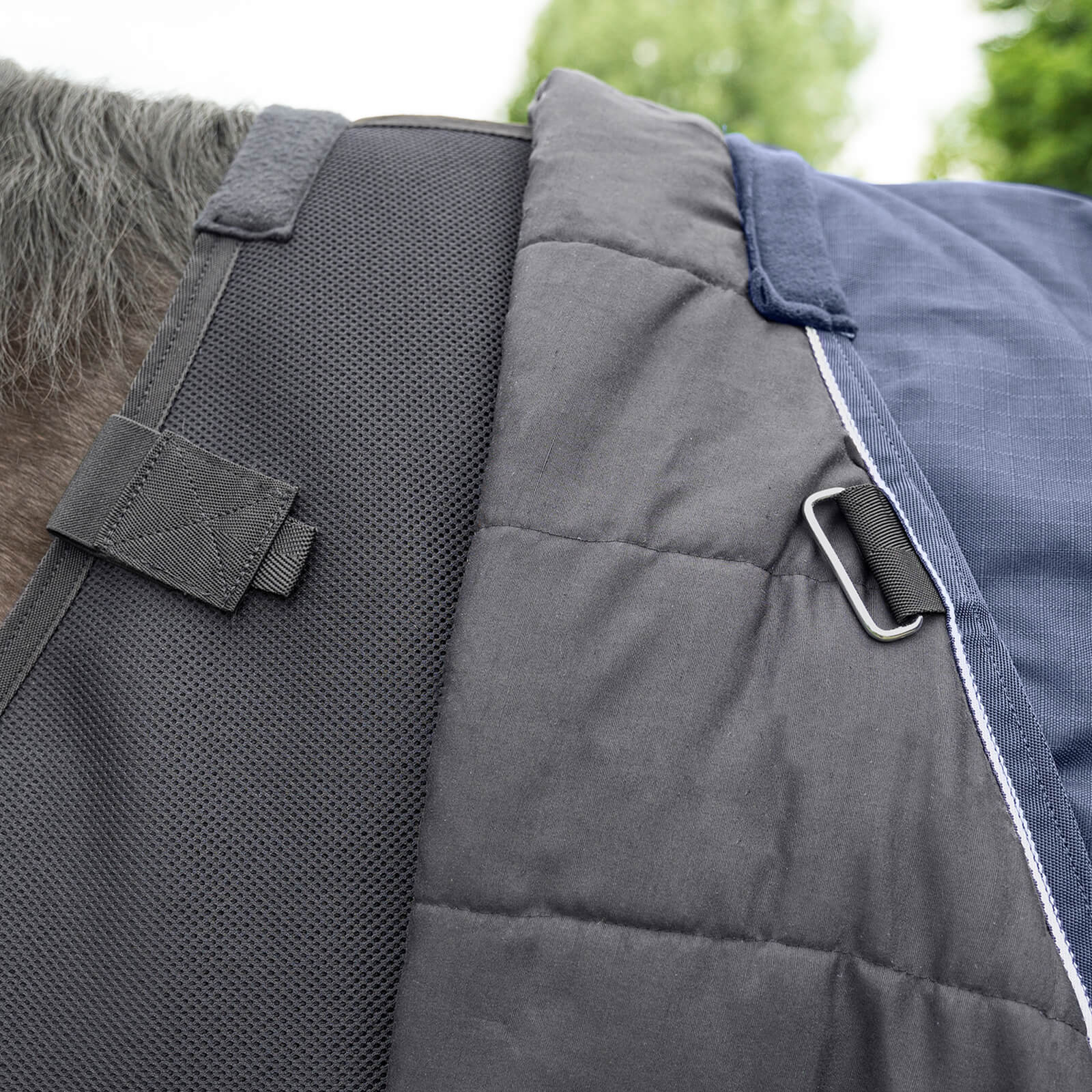 Dank des speziellen Air Mesh Gewebes bietet diese Unterdecke eine exzellente Belüftungs- und Abschwitzfunktion, die Hitzestau effektiv vorbeugt. Der einfache T-Brustverschluss ermöglicht eine schnelle und sichere Befestigung. Mit elastischen Klett-Strippen im Schulterbereich und am hinteren Teil der Decke lässt sich die Unterdecke mühelos an allen Waldhausen-Decken anbringen, was die Anpassungsfähigkeit und den Komfort erheblich steigert.
