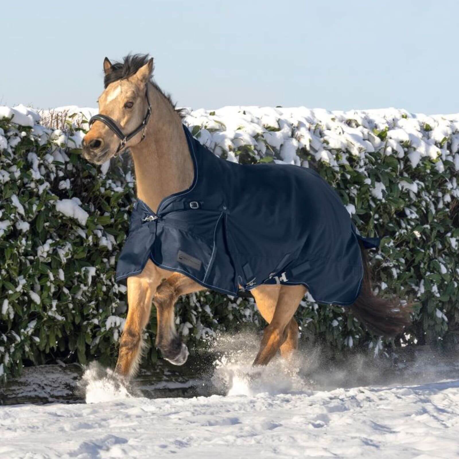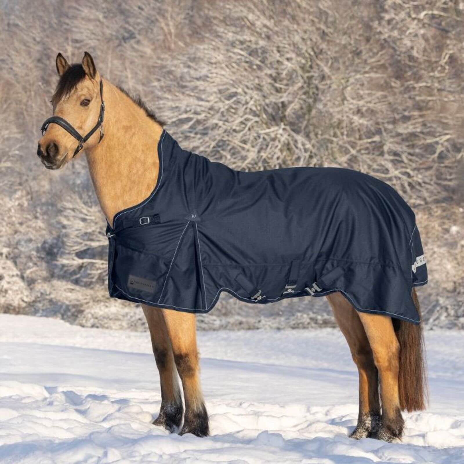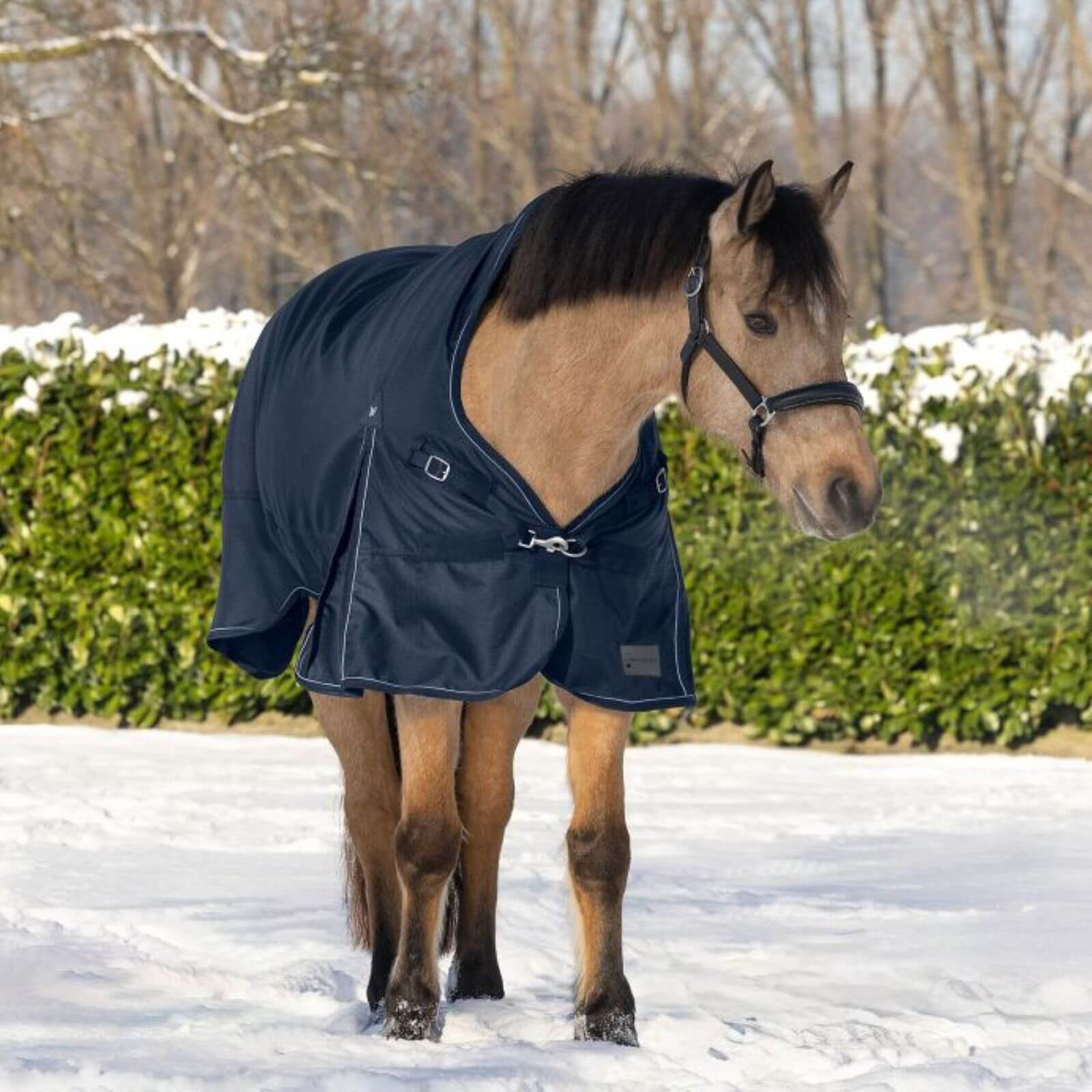 Die Outdoordecke 200g High Neck Scandic Weidedecke besticht durch ihr elegantes Nachtblau oder klassisches Schwarz. Der High Neck Schnitt minimiert Scheuerstellen und sorgt für optimalen Schutz des Mähnenkamms. Reflektierende Biesen erhöhen die Sicherheit bei schlechten Lichtverhältnissen und machen die Decke zu einem optischen Highlight auf der Weide.