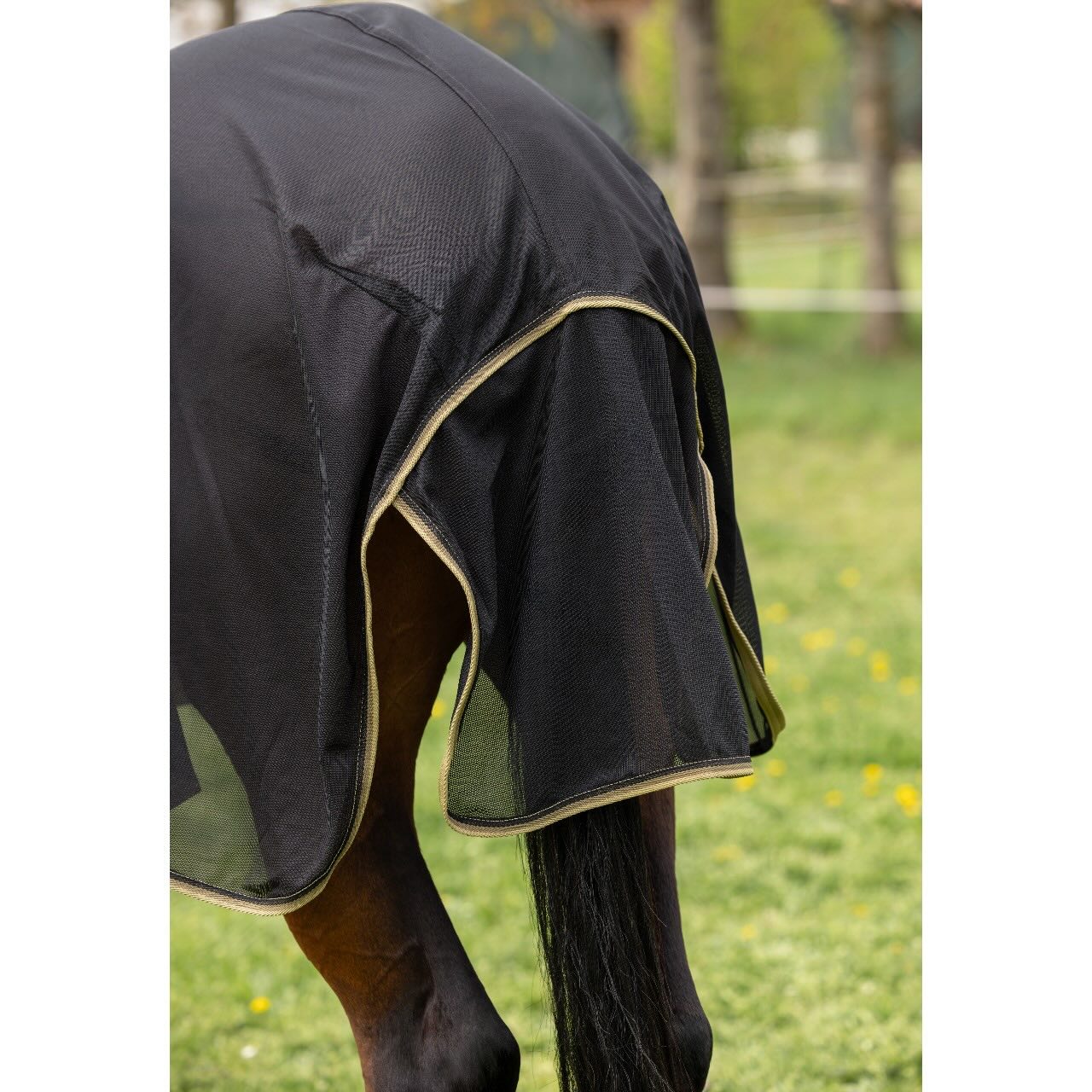 Das engmaschige, weiche Polyestergewebe bietet einen effektiven Schutz vor lästigen Fliegen, Bremsen sowie Stech- und Beißinsekten. Gleichzeitig überzeugt das Material durch seine angenehme Leichtigkeit und hohe Strapazierfähigkeit im täglichen Einsatz. Die Decke eignet sich optimal für Weidegang, Offenstall oder Paddock. Durch die atmungsaktive Struktur wird ein Hitzestau unter der Fliegendecke reduziert. Zusätzlich ist das Gewebe UV-beständig und schützt dein Pferd auch an sonnigen Tagen. So unterstützt die Decke das Wohlbefinden deines Pferdes während der gesamten Fliegensaison.