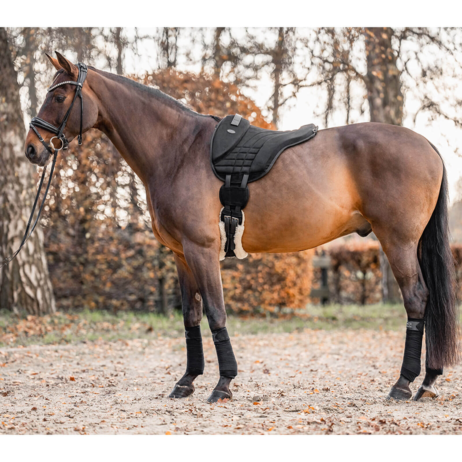 Das Reitpad Harper ist mit einer Neopren-beschichteten Unterseite ausgestattet, die Atmungsaktivität und Schlagabsorption bietet. Der Anti-Rutsch-Effekt sorgt für zusätzlichen Halt, während die spezielle Polsterung einen balancierten Sitz ermöglicht. Die innovative V-Gurtung und die stabilisierten Gurtstrupfen gewährleisten eine gleichmäßige Druckverteilung, die sowohl dem Reiter als auch dem Pferd zugutekommt.