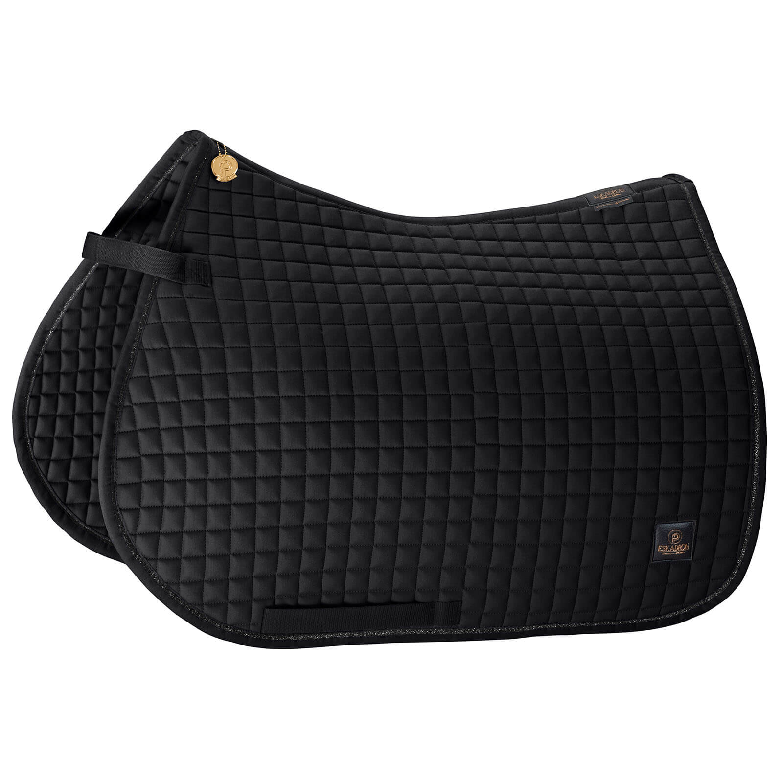Die Schabracke begeistert durch ihr zeitloses Design in den Farben Black, Cognac, Powder Blue und Tan Taupe. Der elegante Lurex-Streifen im Einfassband verleiht ihr einen edlen Look, während das beidseitige Platinum Emblem für einen exklusiven Touch sorgt. Diese optischen Highlights machen die Schabracke zu einem echten Hingucker auf jedem Turnier.