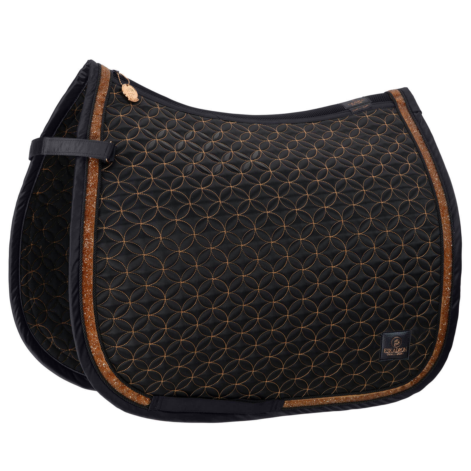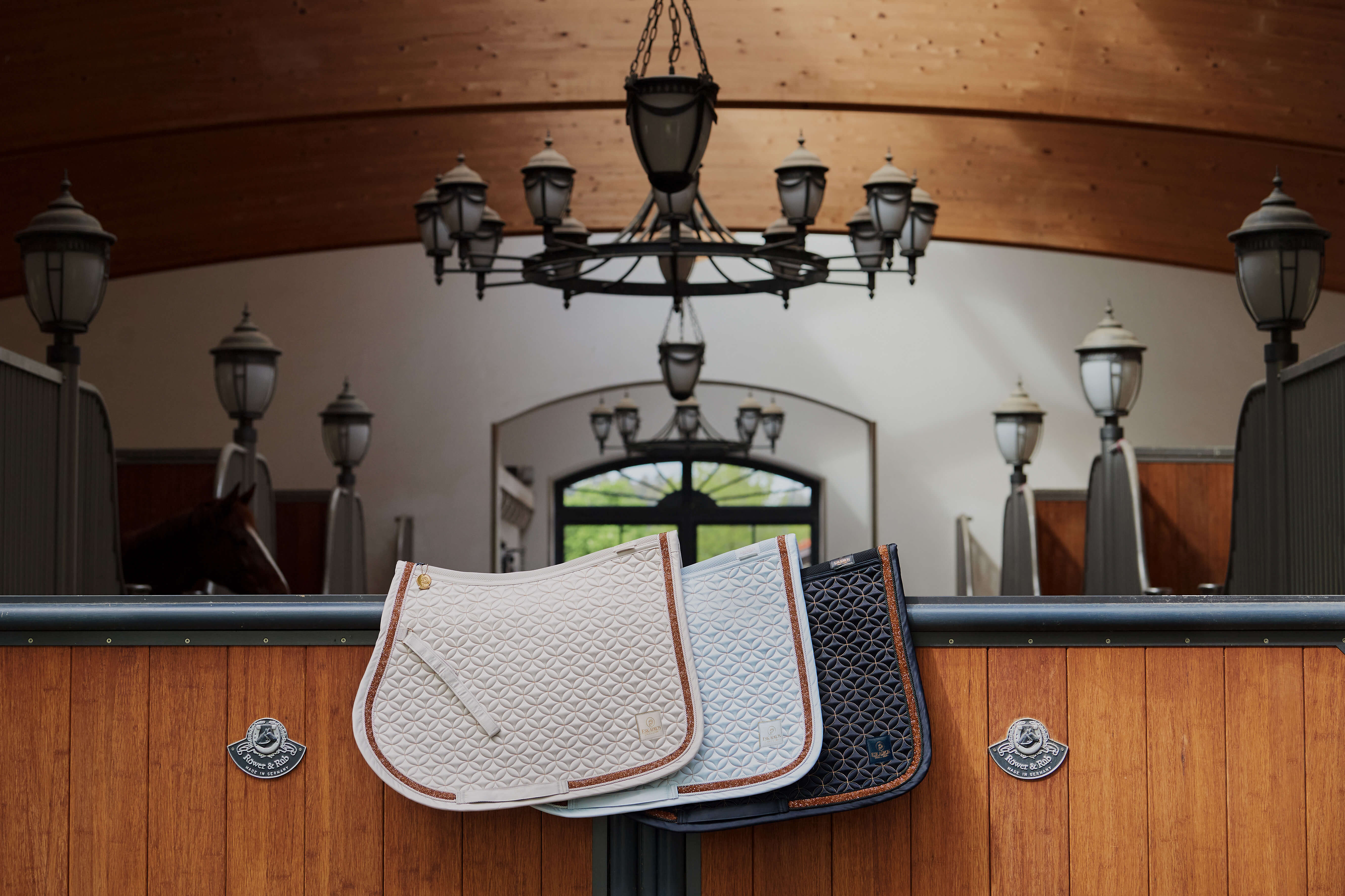 Die Schabracke besticht durch ihre edle Mattgloss-Oberfläche und die sorgfältig platzierten Platinum Embleme auf beiden Seiten. Das elegante Design in den Farben Black, Powder Blue und Tan Taupe sorgt nicht nur für einen beeindruckenden Auftritt, sondern bietet durch die hochwertige Verarbeitung auch langfristige Beständigkeit. Perfekt für anspruchsvolle Reiter, die Wert auf Ästhetik und Funktion legen.