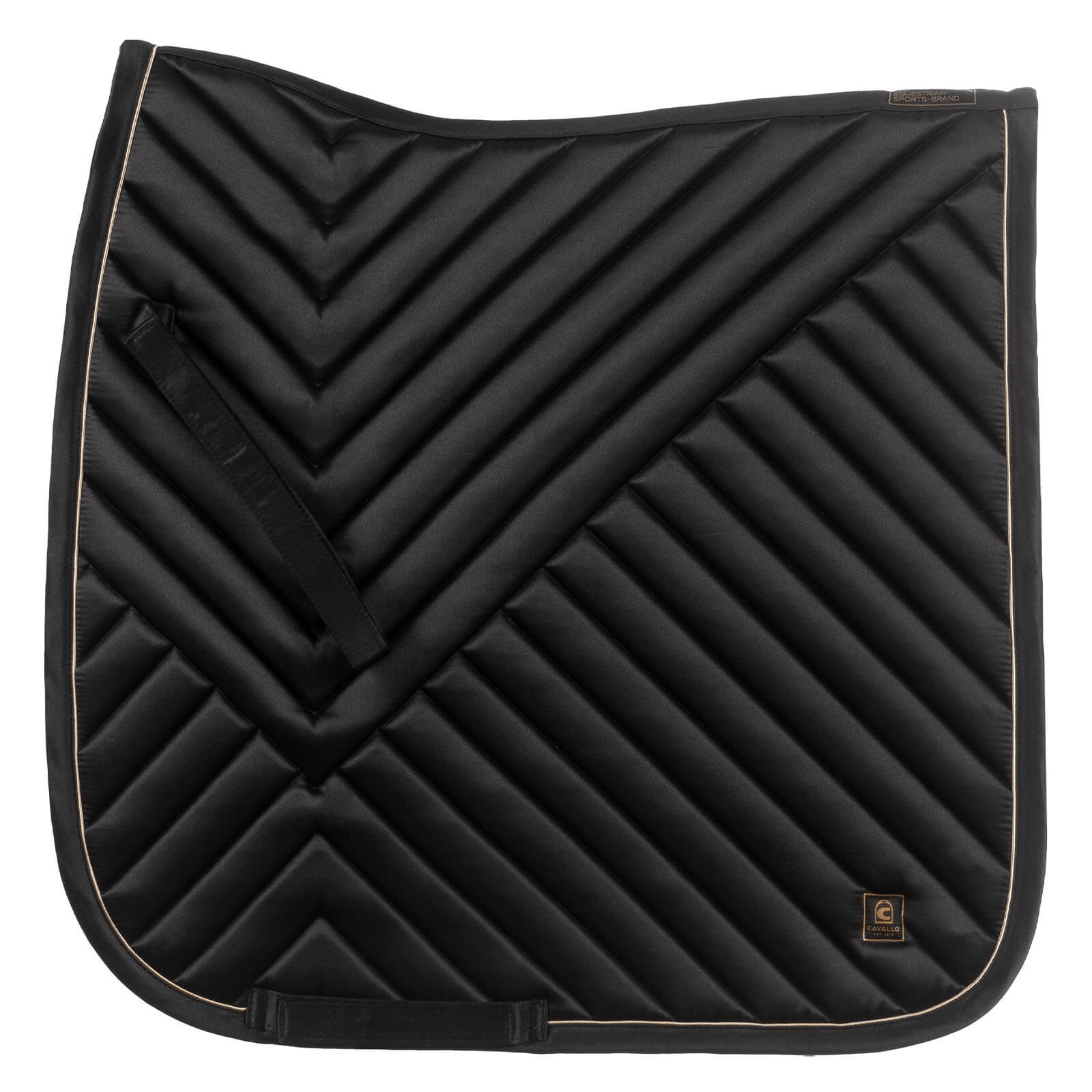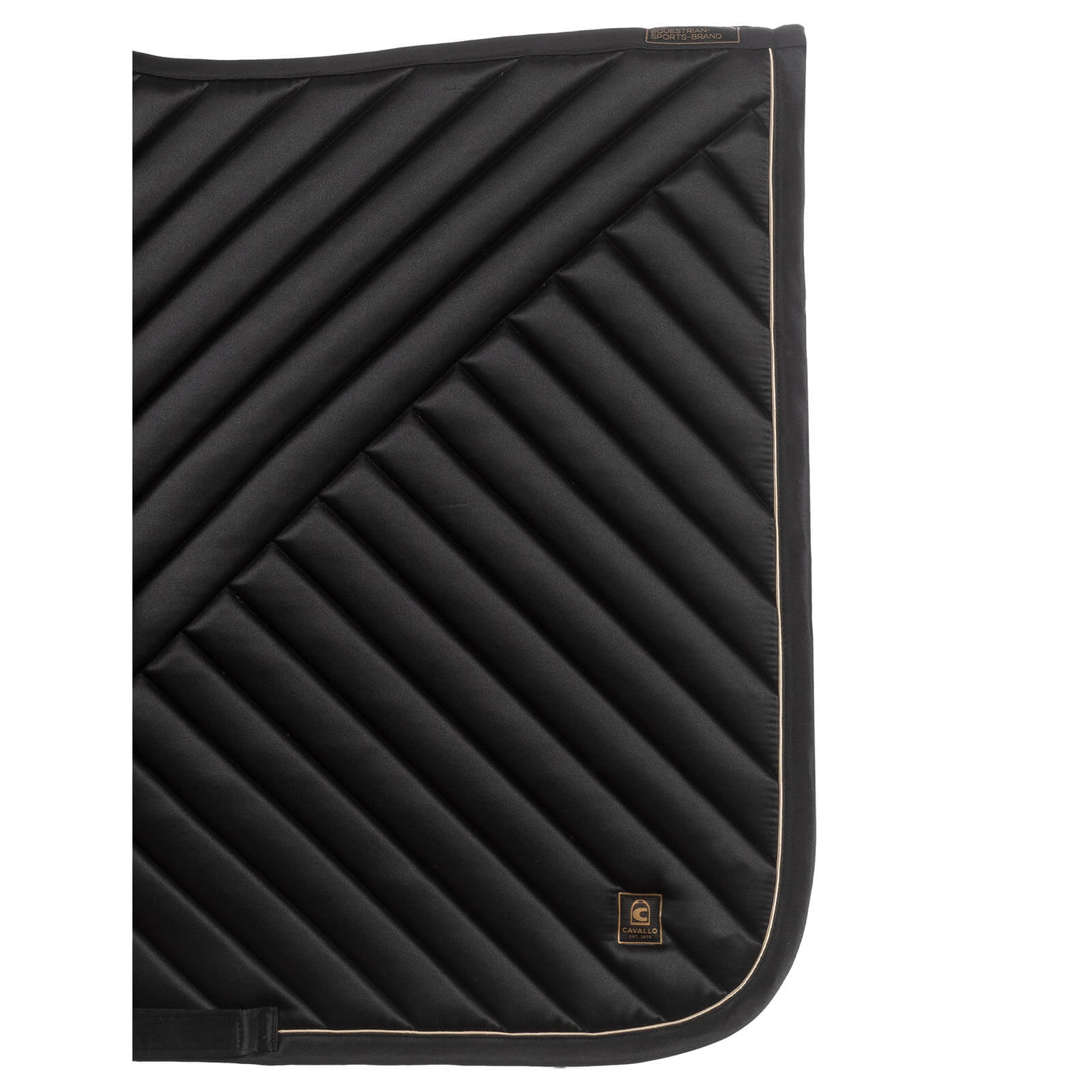 Die Schabracke Dressur CAVALLEANDRA besticht durch ihre goldene Paspel, die ein elegantes und edles Erscheinungsbild schafft. Das neue Cavallo Logo und das moderne Label auf der Oberseite runden das stilvolle Design ab. Diese optischen Highlights machen die Schabracke zu einem echten Hingucker, während die ästhetischen Elemente gleichzeitig für eine verbesserte Passform sorgen.