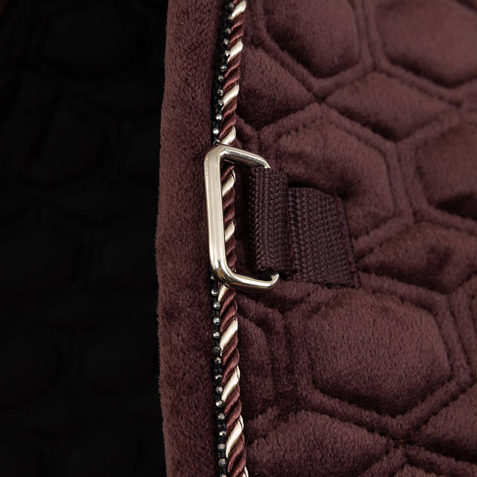 Die dezente Grafik auf den Gurtstrippenschlaufen der Fayen Dressurschabracke verleiht deinem Auftritt eine stilvolle Note. Die Farbtöne Fudge und Quiet Shade harmonieren perfekt und sorgen für einen eleganten Look, der sowohl im Training als auch auf Turnieren beeindruckt. Diese Schabracke bietet nicht nur optische Reize, sondern auch praktische Vorteile durch ihre langlebigen Materialien.