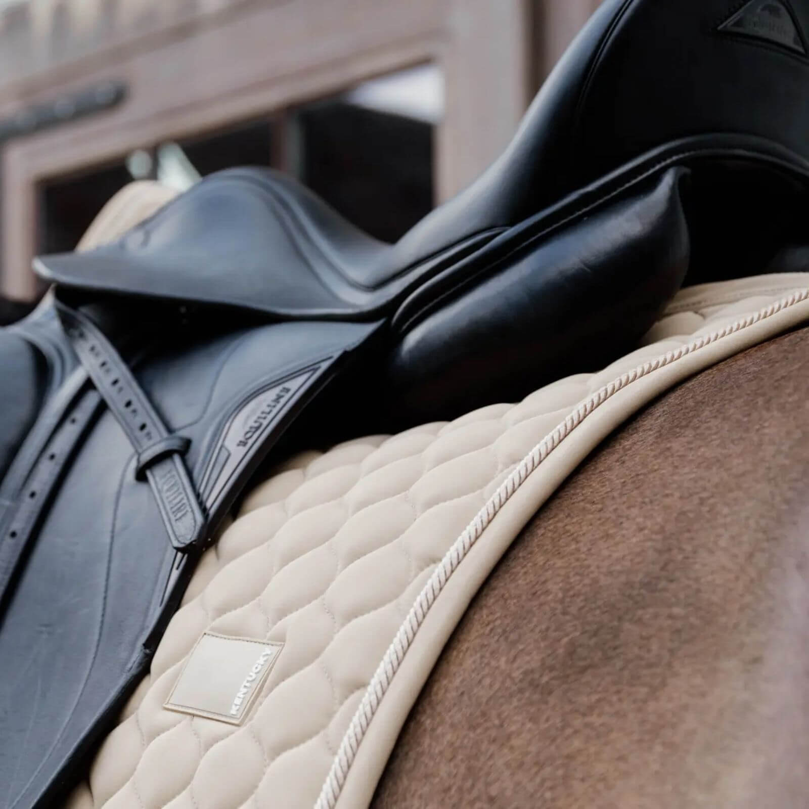 Dressurschabracke Onion Quilt Rubber Logo Schabracke von Kentucky Horsewear kombiniert edles Design mit herausragender Funktionalität. Die elegante Fischgräten-Steppung und das dezente Ton-in-Ton Lederlogo machen diese Schabracke zum perfekten Begleiter für anspruchsvolle Dressurreiter. Genieß die Verbindung von Stil und Komfort bei jedem Ritt.