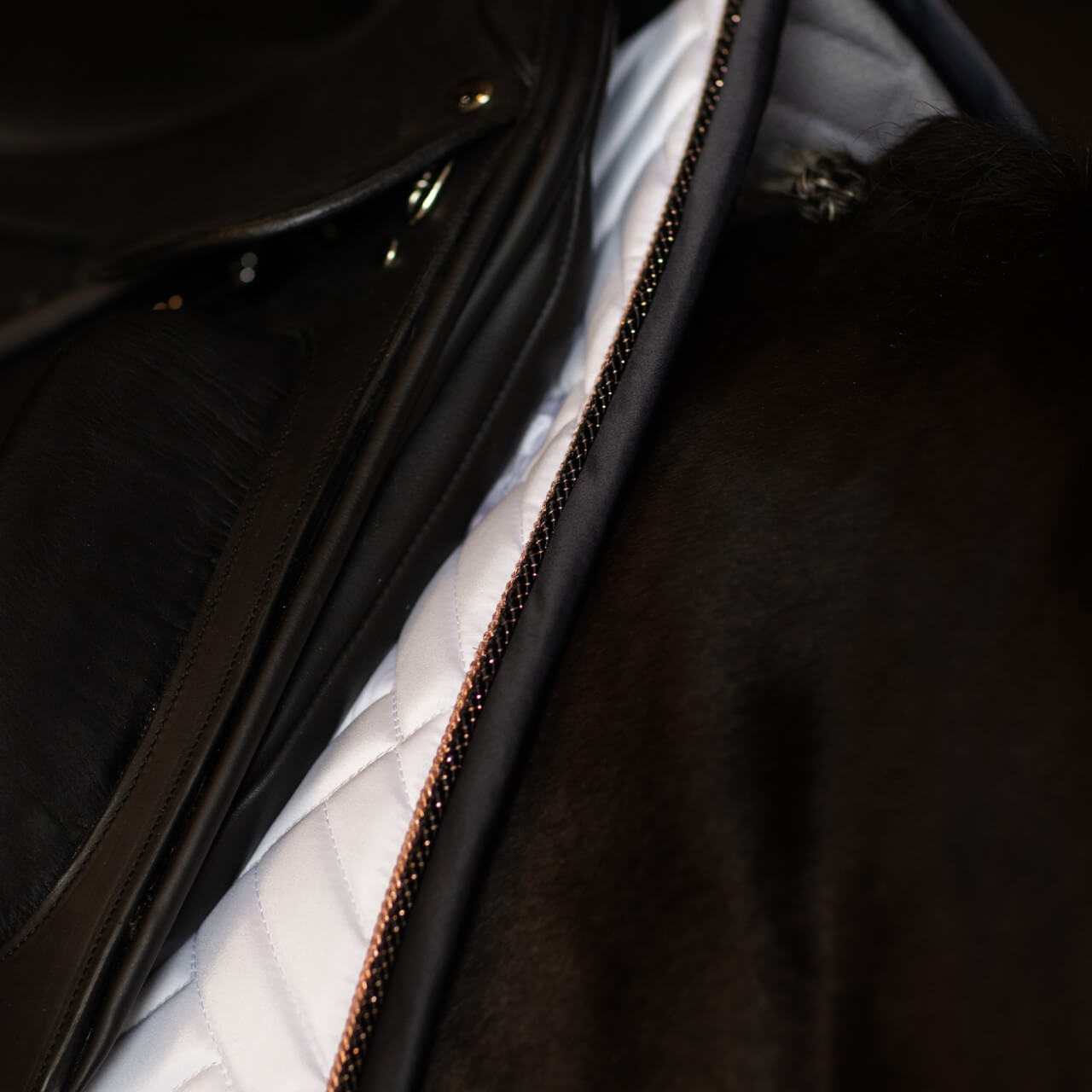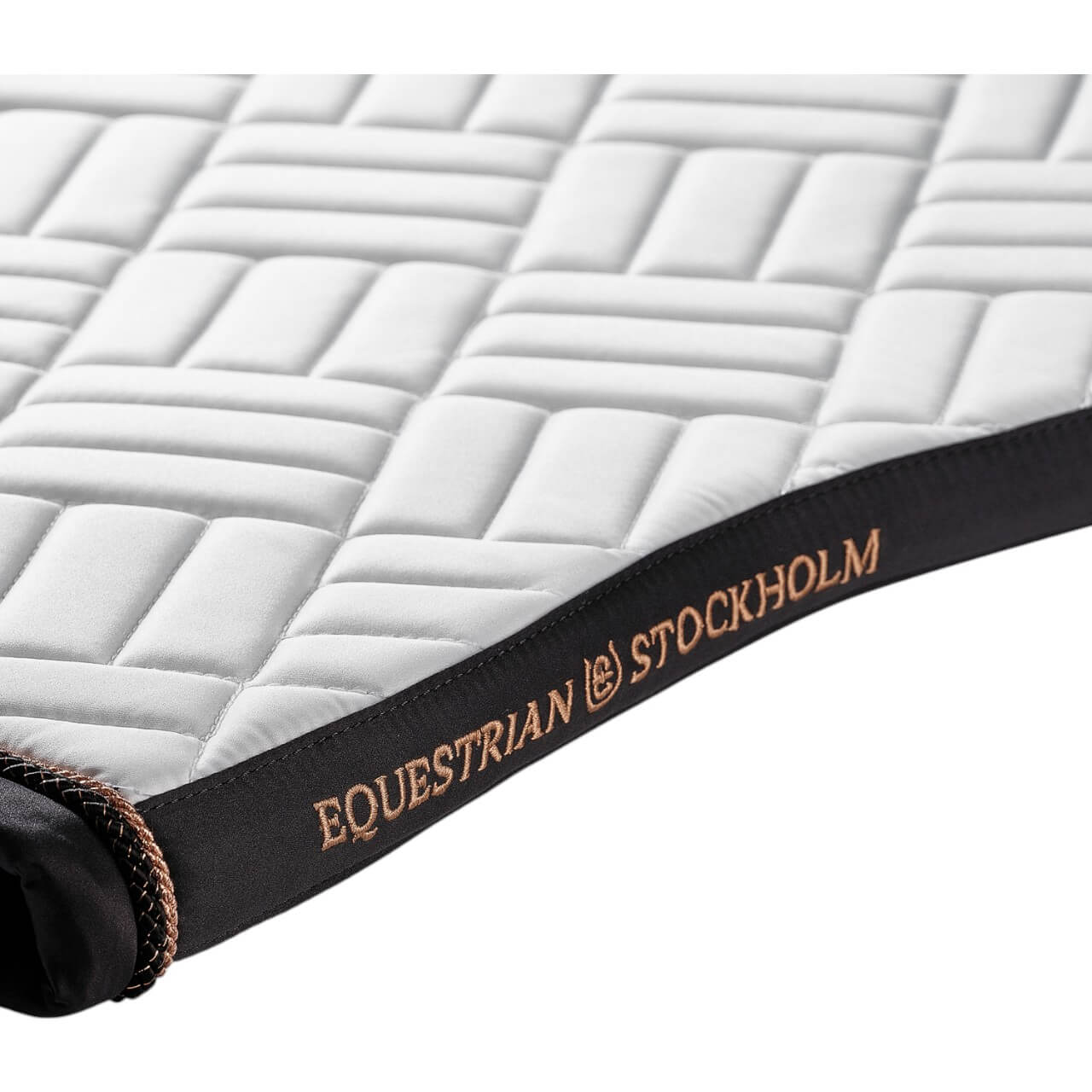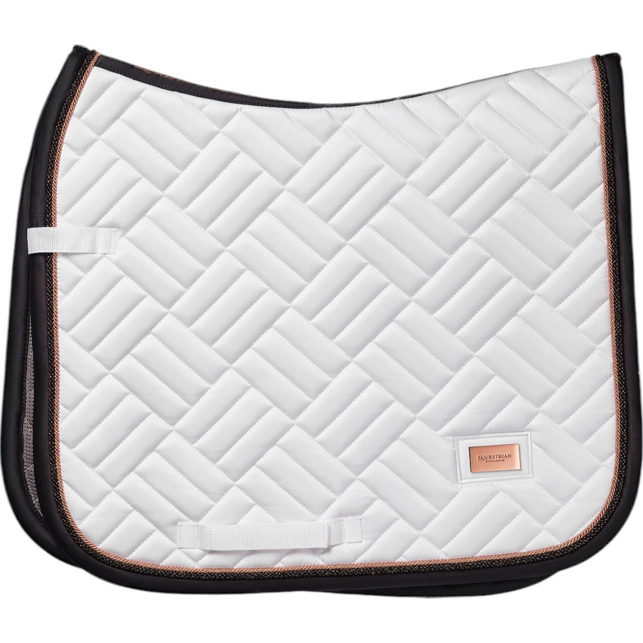 Die außergewöhnliche Steppung und der elegante Farbmix aus strahlendem Weiß und tiefem Ozeanblau machen die Schabracke zu einem echten Hingucker. Die roségoldenen Details verleihen ihr einen luxuriösen Touch, während das dezente Markenemblem den exklusiven Charakter unterstreicht. Die ergonomische Form sorgt nicht nur für einen sicheren Halt unter dem Sattel, sondern harmoniert auch perfekt mit dem Rücken deines Pferdes.