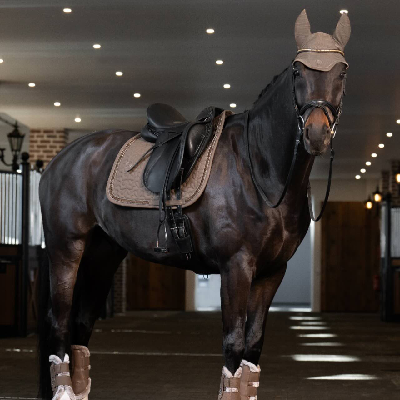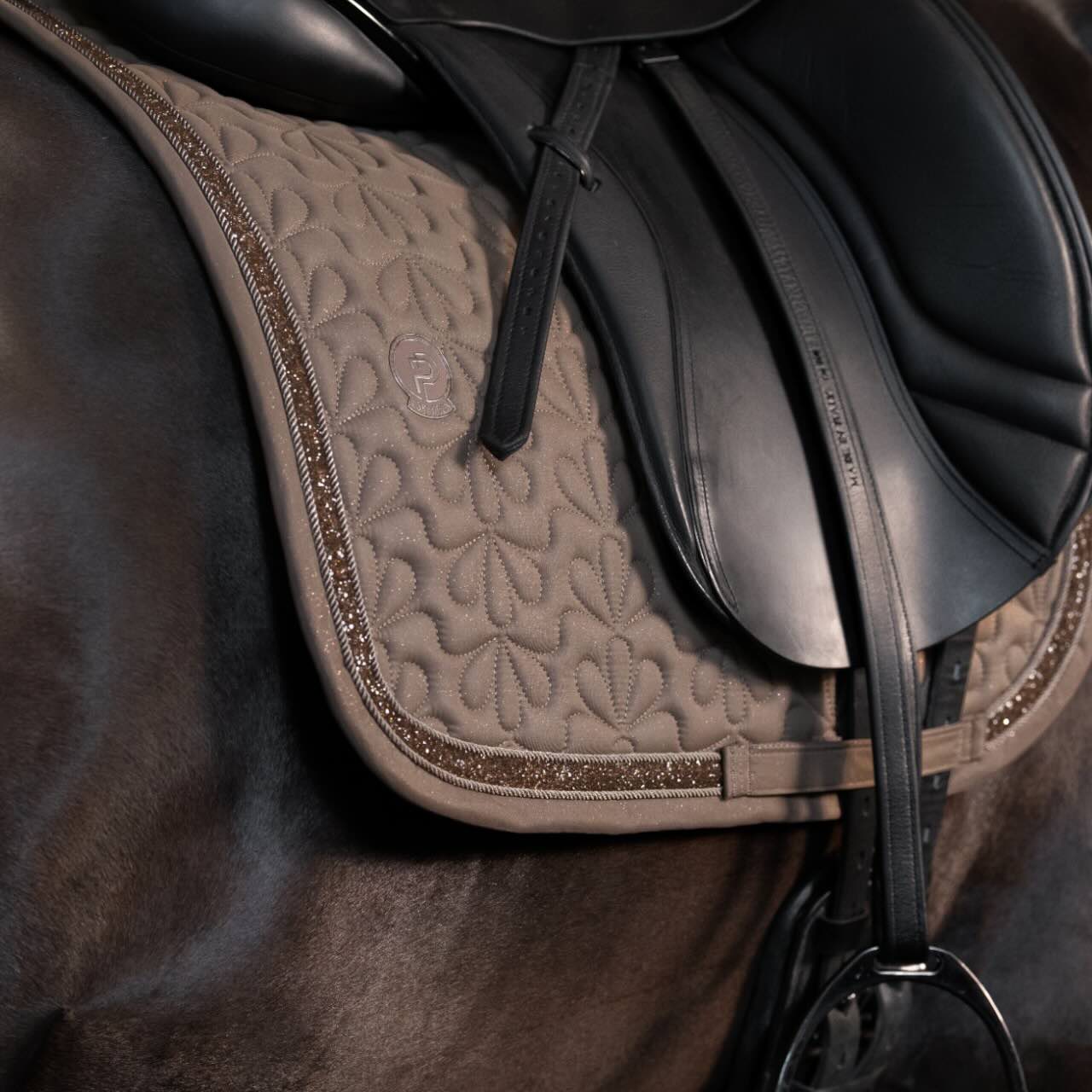 Die Eskadron Dressurschabracke Sparkle Jewel Platinum 2025 kombiniert glanzvolle Optik mit praktischen Features für den täglichen Reiteinsatz. Ihr funkelndes Design, gepaart mit einer durchdachten Schnittführung, macht sie zur stilvollen Wahl für ambitionierte Dressurreiterinnen und -reiter.