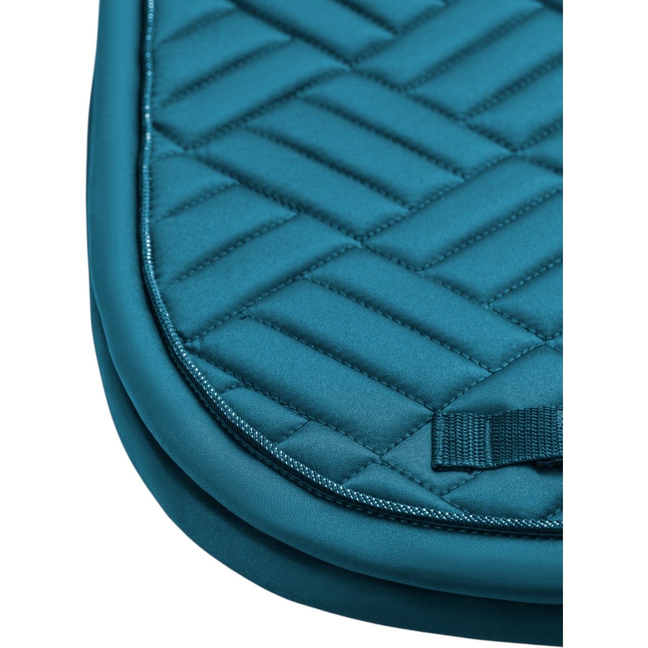 Equestrian Stockholm Dressurschabracke Modern Teal Blue Schabracke kombiniert stilvolles Design mit durchdachter Materialwahl. Das hochwertige Bambus-Innenfutter sorgt für ausgezeichnete Atmungsaktivität und wirkt zugleich antibakteriell. Ideal für anspruchsvolle Dressurreiterinnen, die Komfort und Ästhetik schätzen.