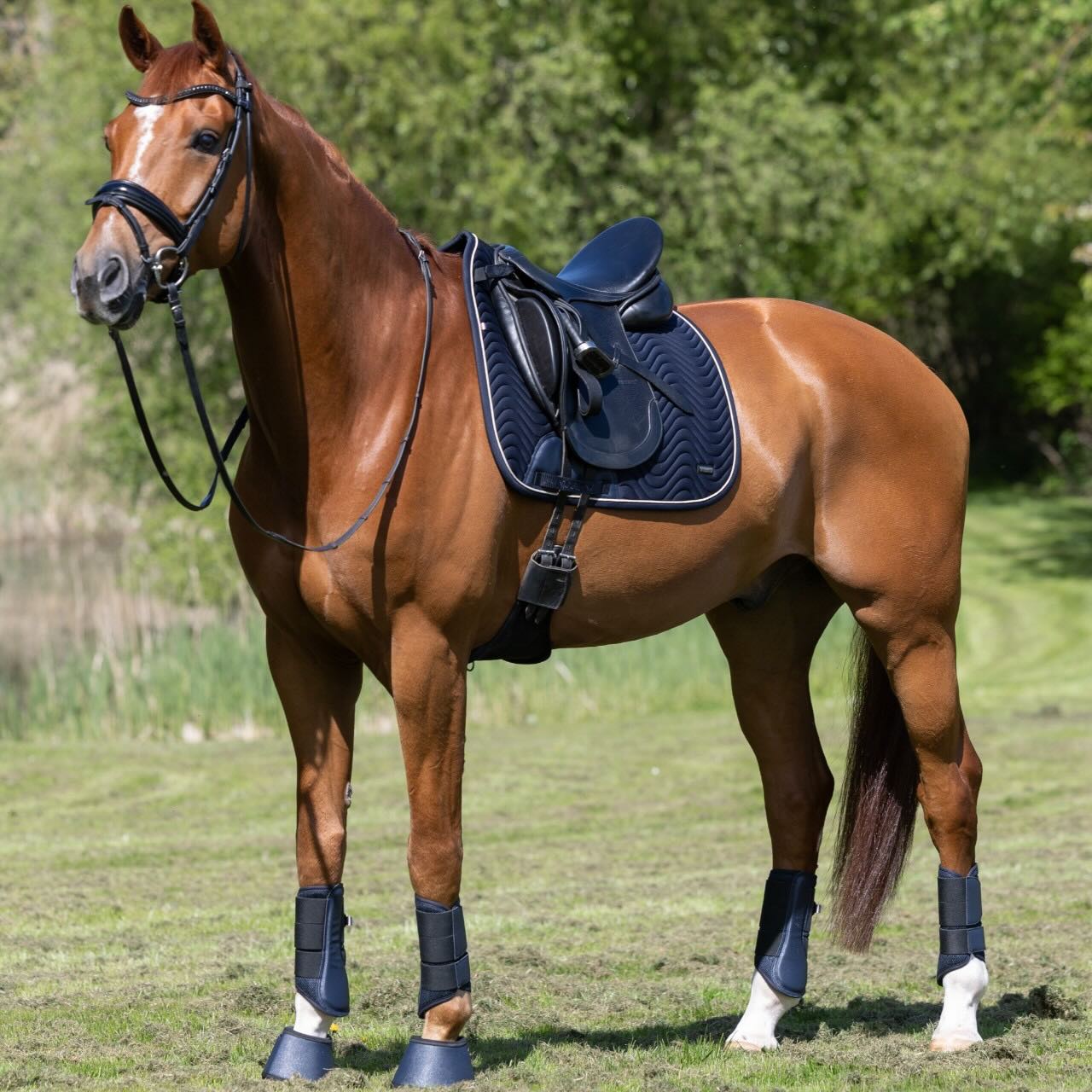 Das feuchtigkeitsaktivierte Cooling-Gewebe reguliert die Temperatur zuverlässig während der Arbeit unter dem Sattel. Entstehende Wärme wird effizient aufgenommen und nach außen abgeleitet, wodurch ein spürbarer Kühleffekt entsteht. Gleichzeitig transportiert das Material Schweiß schnell vom Pferderücken weg. So bleibt das Klima unter der Schabracke auch bei hoher Belastung angenehm trocken. Besonders bei sommerlichen Temperaturen oder intensiven Lektionen in der Dressur zahlt sich diese Funktion aus. Dein Pferd profitiert von mehr Wohlbefinden und konstanter Leistungsbereitschaft.