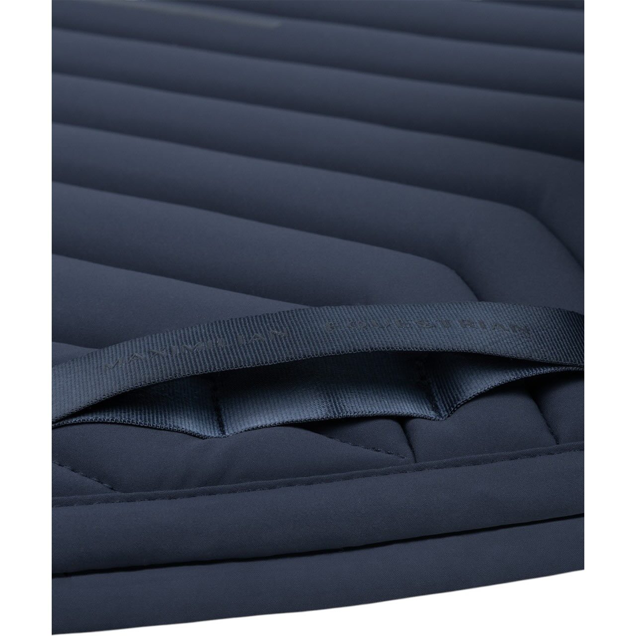 Die moderne Steppung verleiht der Schabracke eine unverwechselbare Optik im Dressurviereck. 3D-gestickte Logos auf beiden Seiten unterstreichen den hochwertigen Markencharakter. Ein metallisches Logo am Widerrist setzt zusätzliche elegante Akzente. Die Schabracke lässt sich ideal mit den passenden Delta-Ohrenschützern kombinieren. Dadurch entsteht ein harmonisches Gesamtbild für Training und Turnier. Funktionalität und Design gehen hier nahtlos ineinander über.