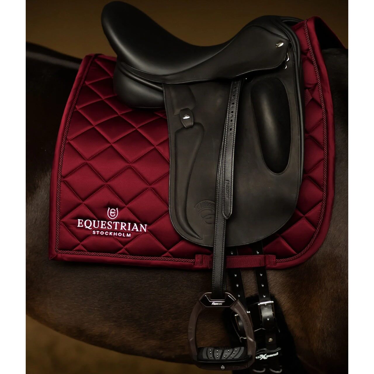 Die Equestrian Stockholm Dressurschabracke Line Bordeaux vereint stilvolles Design mit funktionaler Performance und setzt im Dressursport neue Maßstäbe. Das edle Bordeaux mit feinen weißen Details sorgt für einen eleganten Auftritt, während innovative Materialien deinem Pferd maximalen Komfort bieten.