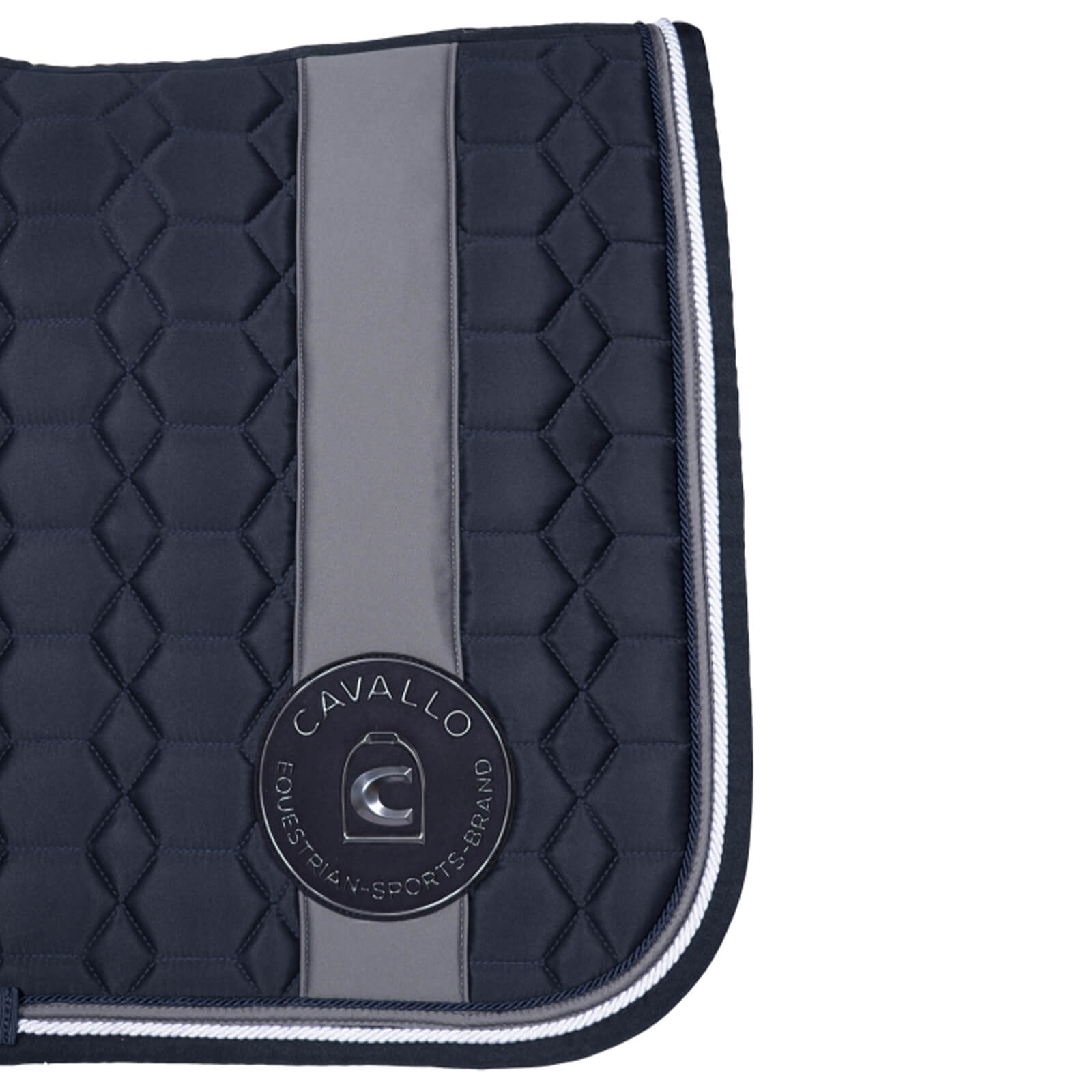 Das aufwendige Rauten-Steppdesign der Schabracke CAVALHALA verleiht deinem Pferd einen edlen Look. Die doppelte Kordel und der vertikale Streifen mit dem exklusiven Cavallo Logo Patch in Gunmetal Optik sorgen für einen stilvollen Auftritt. Diese ästhetischen Merkmale sind nicht nur optisch ansprechend, sondern bieten auch eine beständige Form und sicheren Halt.