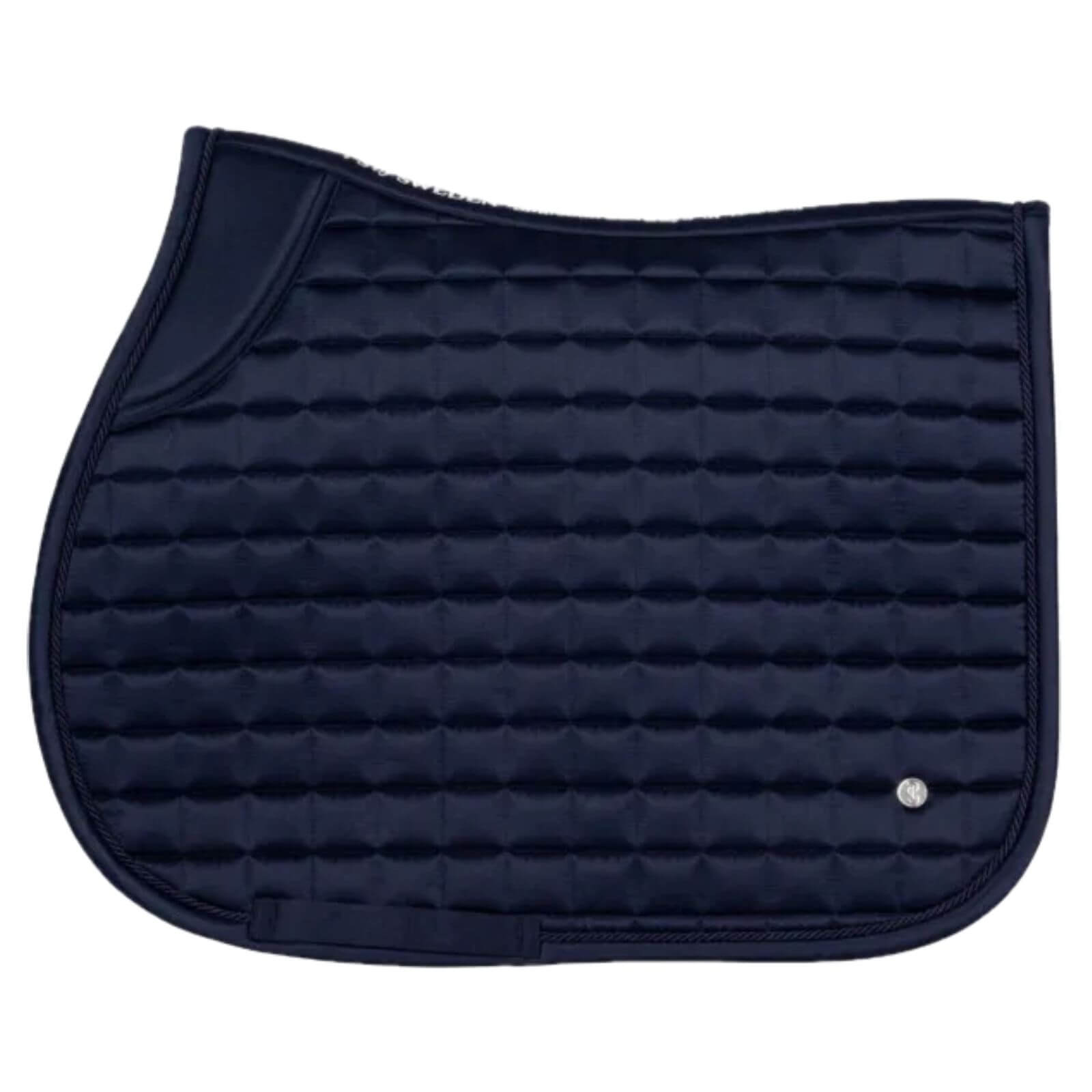 Die Springschabracke besticht durch ihre charakteristische diagonale Steppung und den dekorativen Lollipop am Rand, was ihr eine raffinierte Optik verleiht. Erhältlich in den edlen Farben Navy, Midnight Green und Dark Ivory, passt sie perfekt zu deiner Reitausstattung. Das Design sorgt nicht nur für Ästhetik, sondern auch für eine optimale Anpassung und Stabilität während des Reitens.