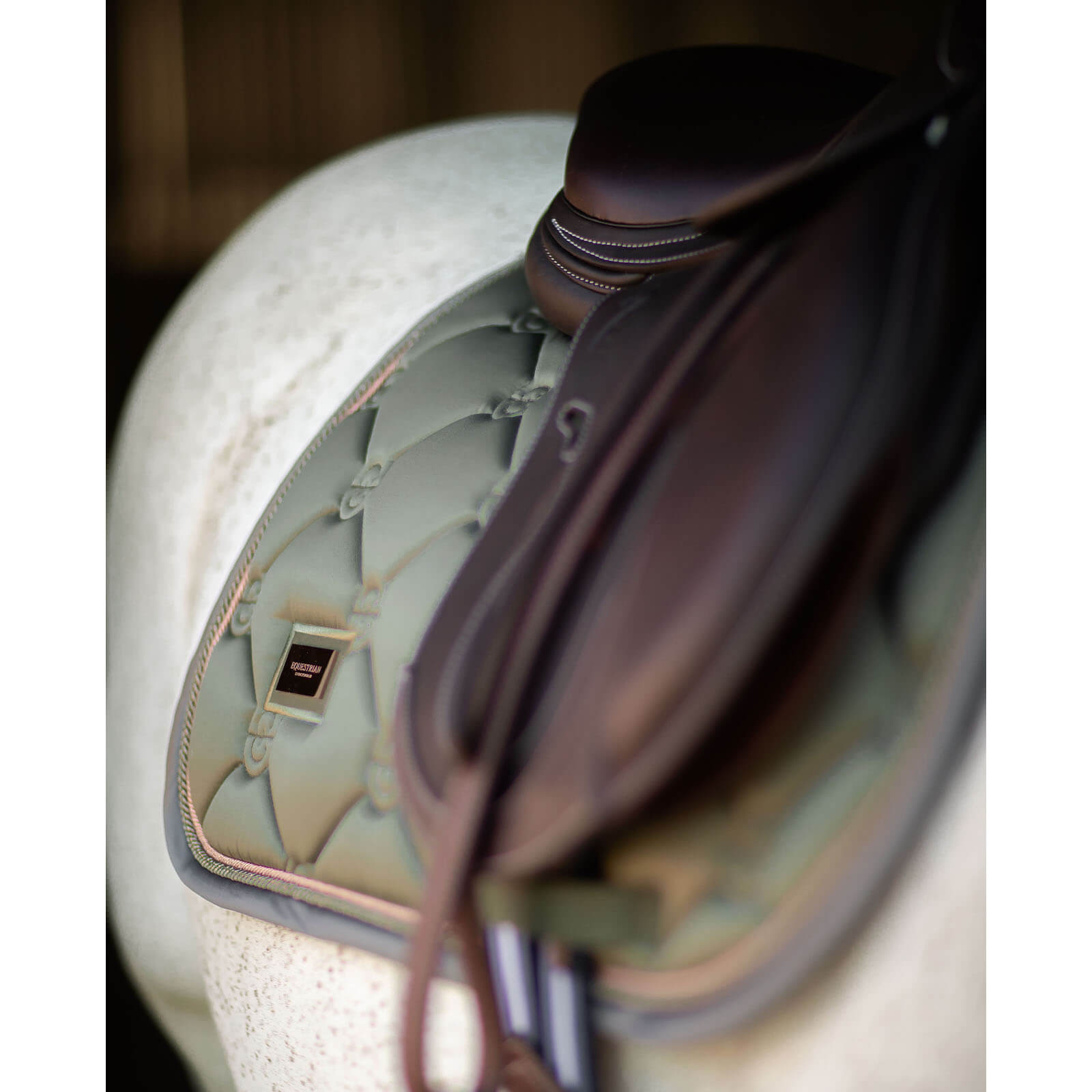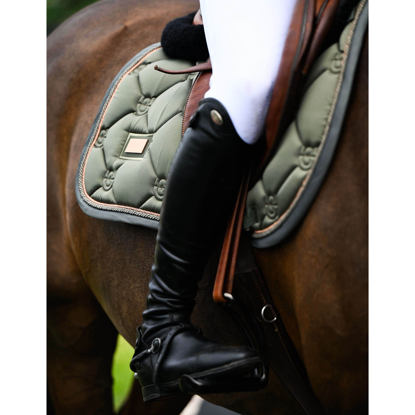 Springschabracke Striking Valley von Equestrian Stockholm vereint stilvolles Design mit herausragender Funktionalität. Diese Schabracke in einem edlen Olivgrün mit roségoldenen Akzenten sorgt nicht nur für einen luxuriösen Look, sondern bietet auch maximalen Komfort für dein Pferd. Erlebe, wie Perfektion und Funktionalität dein Reiterlebnis auf ein neues Level heben.