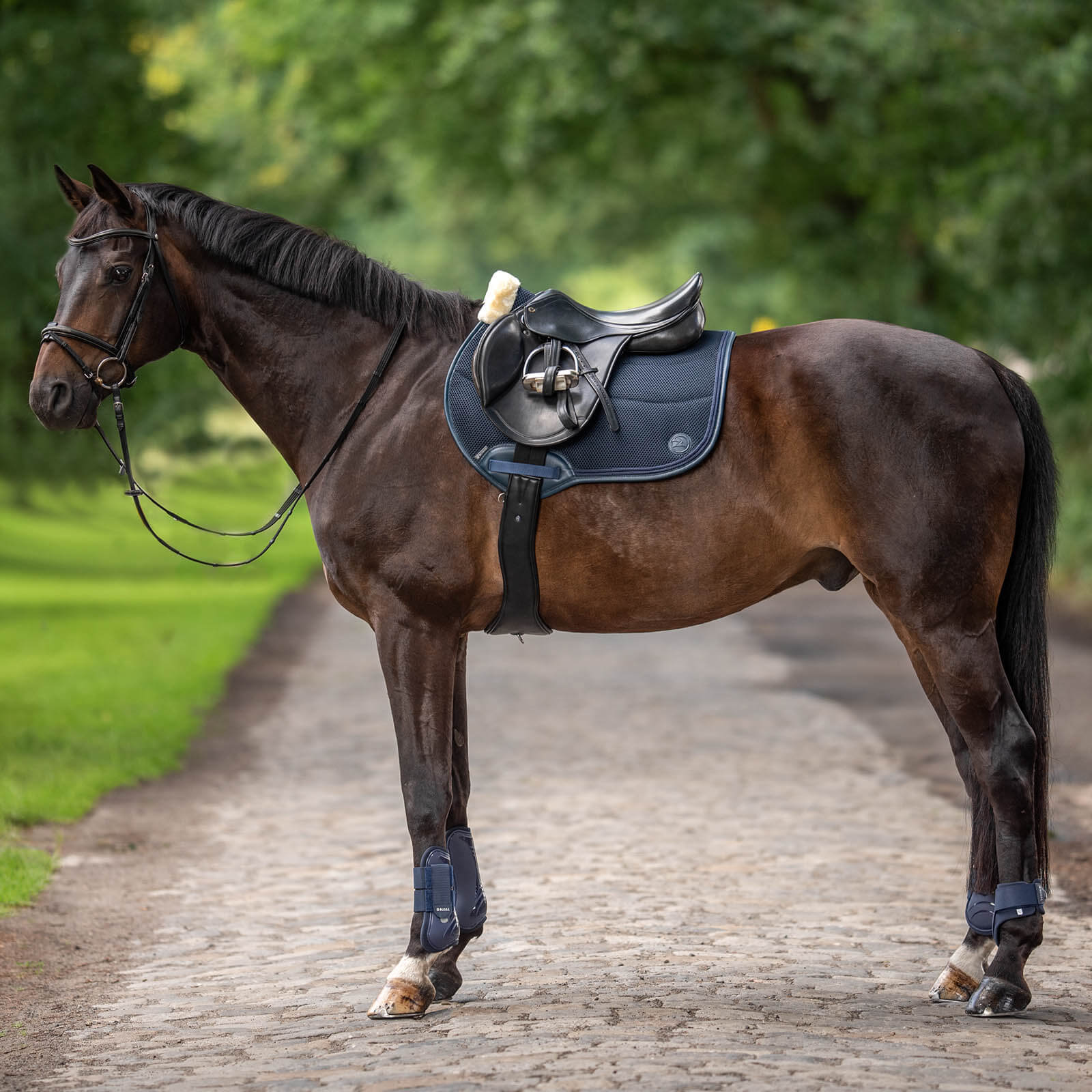 Einzigartige Vielseitigkeitsschabracke aus hochfunktionellem, innovativem 3D AIR® EFFECT Mesh-Material. Die Doppel-Zierkordel sowie die Kunstleder-Logoapplikation zusammen mit dem weichen Widerristpolster aus kuscheligem Kunstfell verleihen eine klassisch-sportliche Optik im Gelände und Parcours.