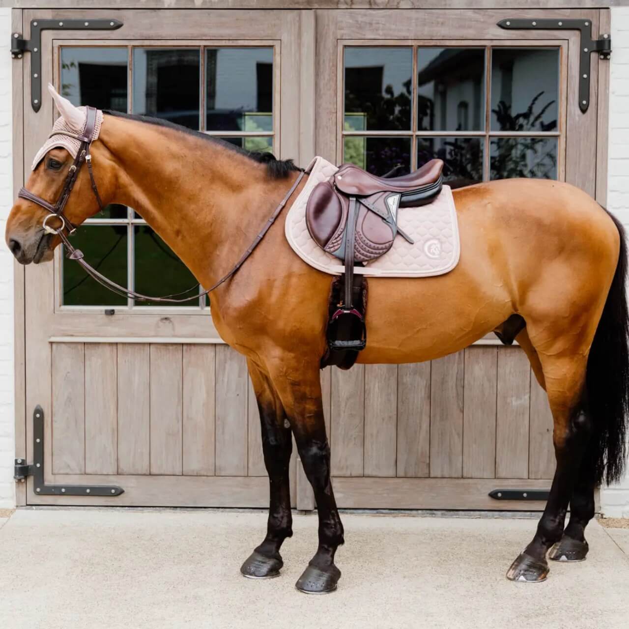 Die Springschabracke beeindruckt mit ihrer eleganten Zwiebel-Steppung, die nicht nur ästhetisch ansprechend ist, sondern auch das Dämpfungsmaterial sicher in Position hält. Das sportliche 3D-Logo von Kentucky Horsewear verleiht der Schabracke einen modernen Touch und hebt sie von der Masse ab. Mit ihrer anatomischen Form sorgt sie für eine optimale Passform und verhindert Druck- sowie Reibungspunkte.